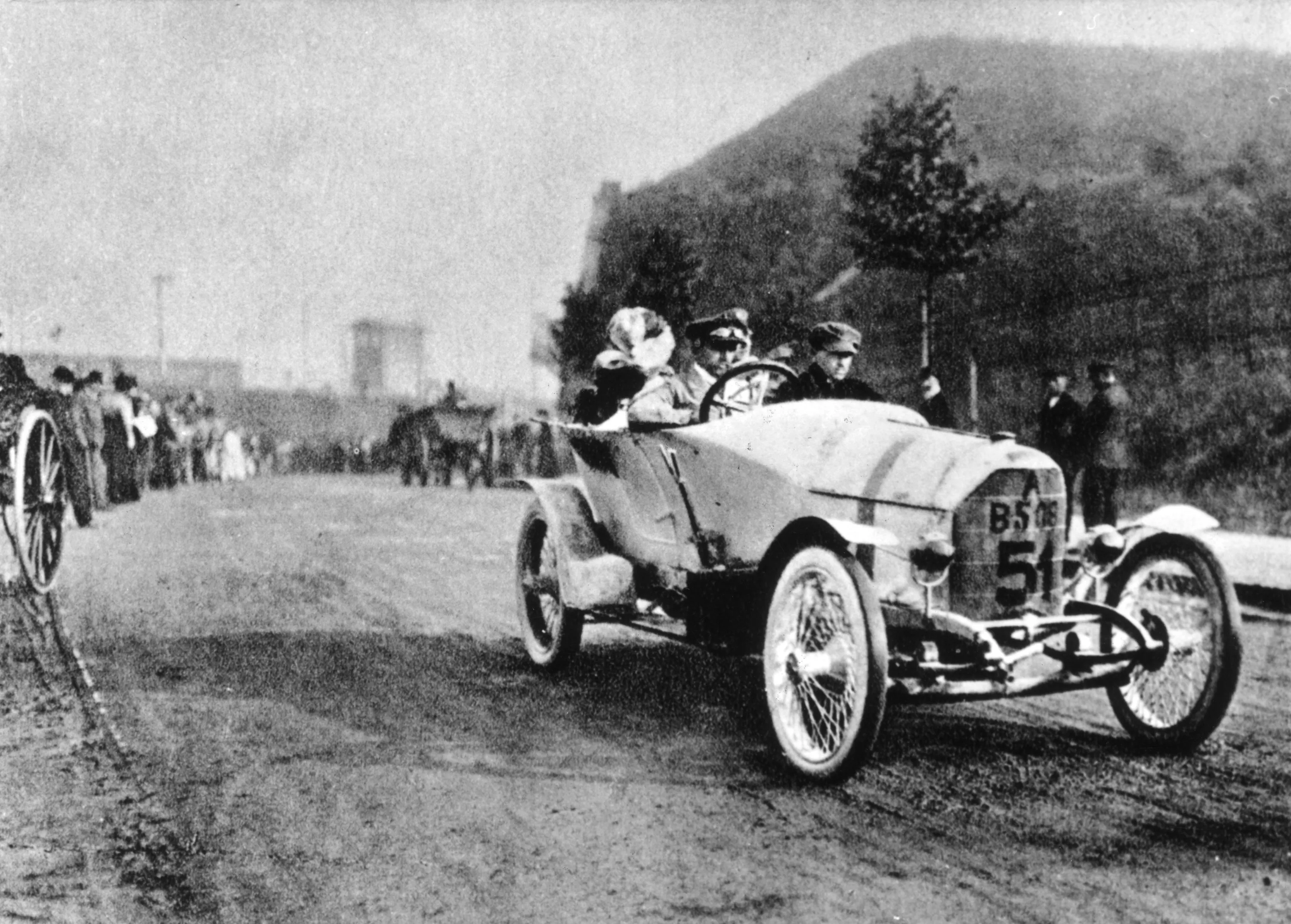 German racing driver and engineer Ferdinand Porsche (1875–1951) driving an Austro Daimler at the Prince Henry Trial, 1910. (Photo by Keystone)