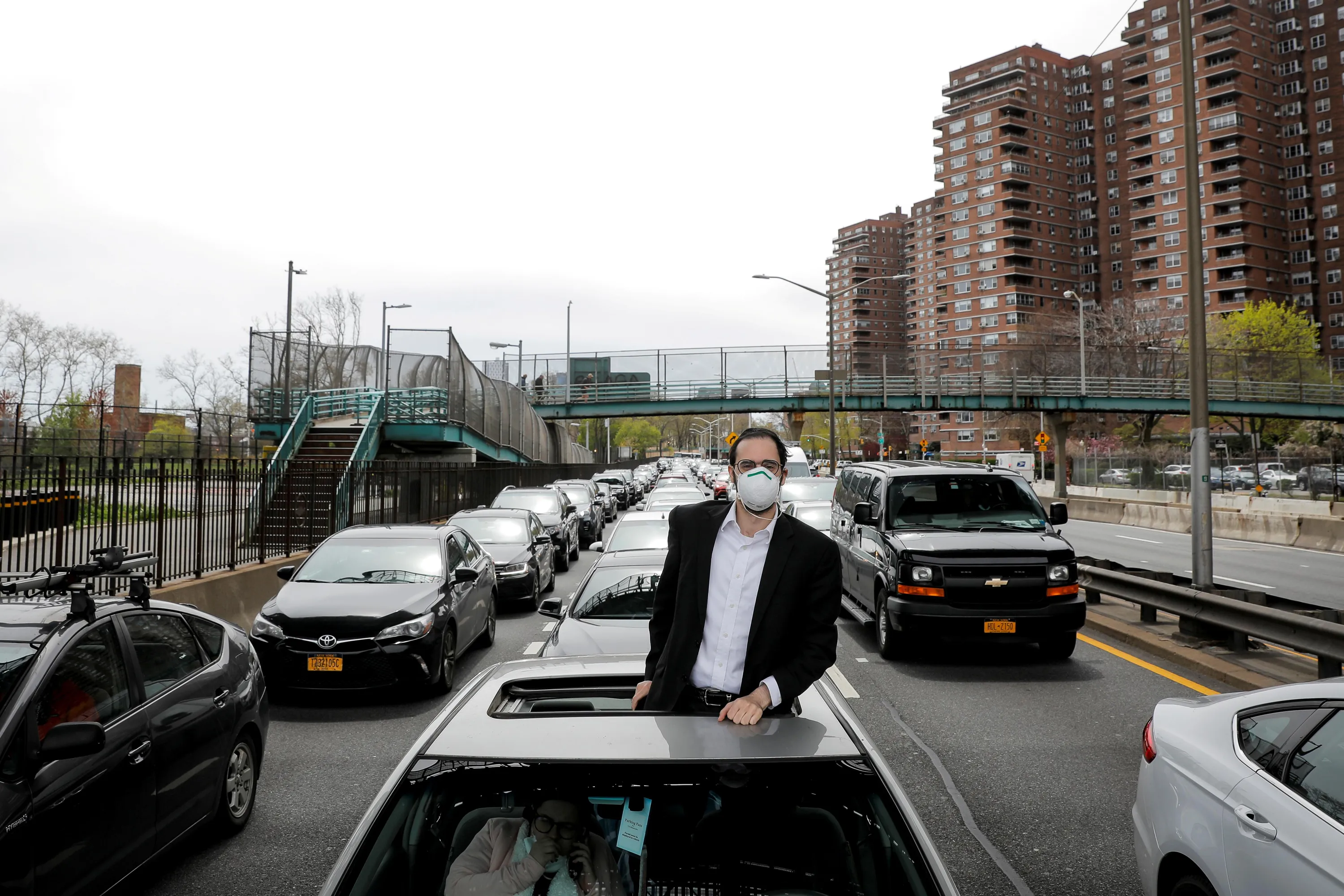 A man looks out of his car during a traffic stoppage, during the outbreak of the coronavirus disease (COVID-19) in New York City, New York, U.S., April 20, 2020. (Photo by Andrew Kelly/Reuters)