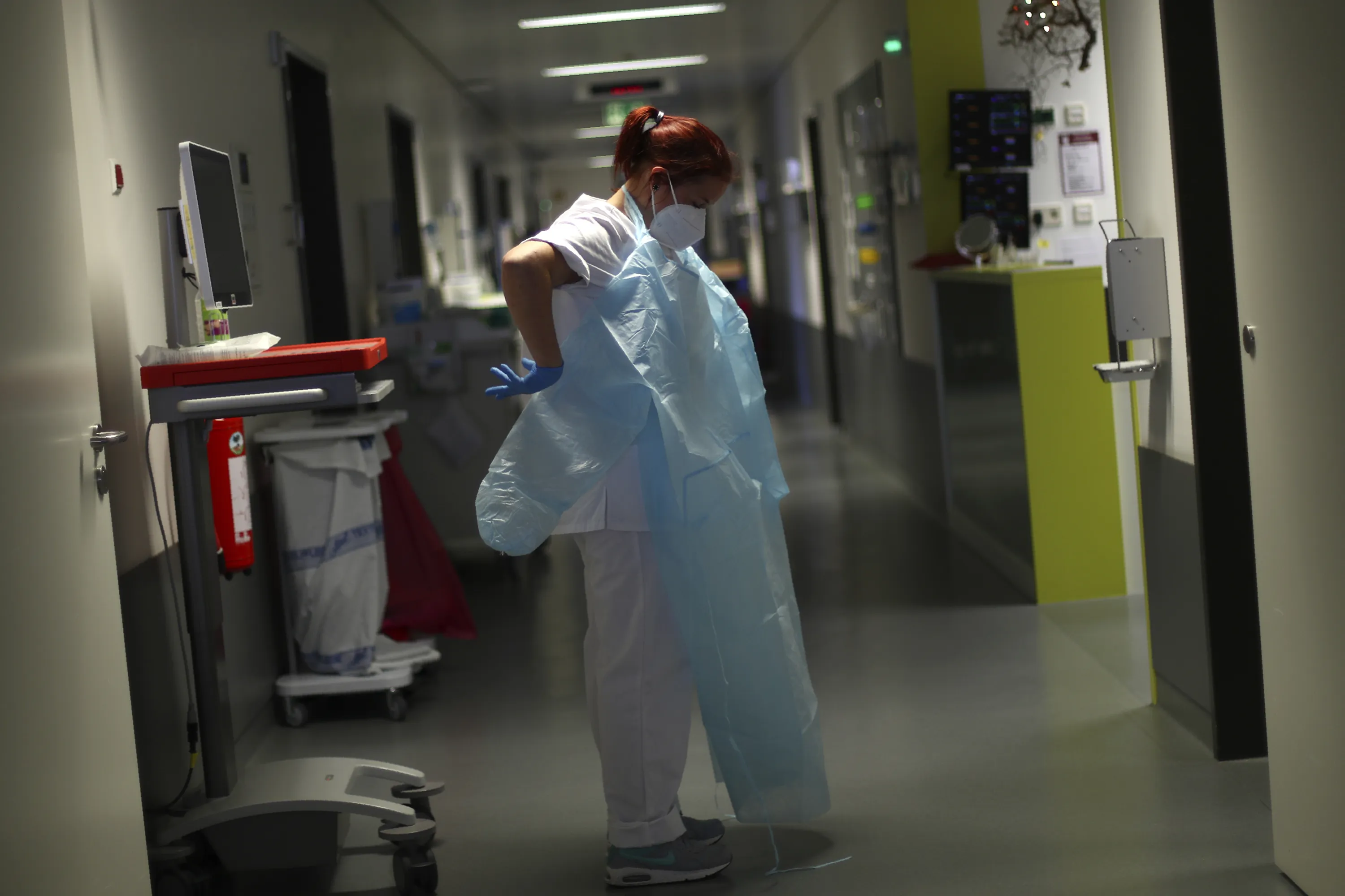 In this Wednesday, April 29, 2020 photo a nurse puts on protective gear at the start of a shift at the intensive care units of the hospital in Muehldorf am Inn, Germany. The whole hospital was converted for the treatment of corona patients. The new coronavirus causes mild or moderate symptoms for most people, but for some, especially older adults and people with existing health problems, it can cause more severe illness or death. (Photo by Matthias Schrader/AP Photo)