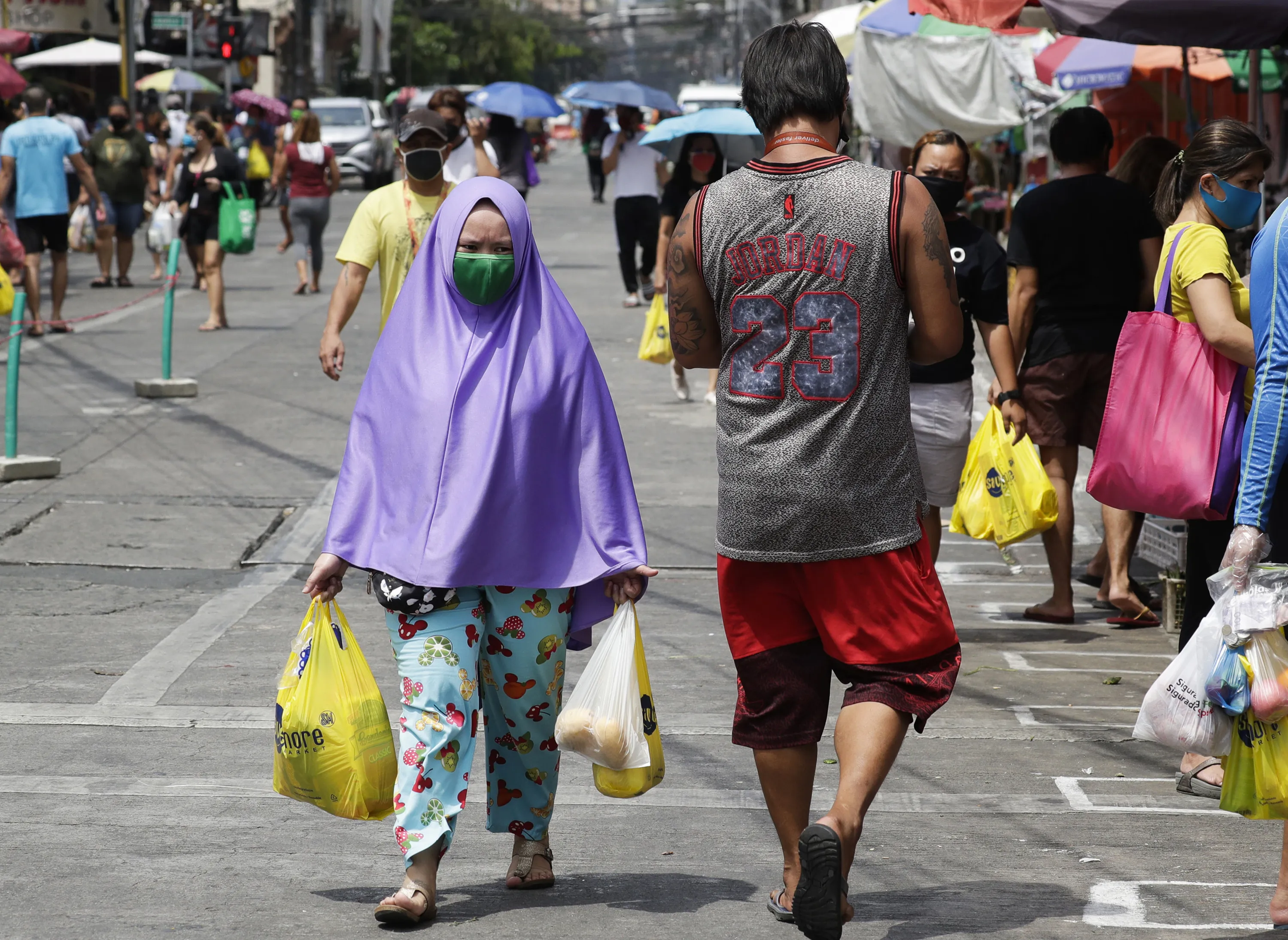 A Muslim woman wears a protective mask as she goes to a public market during an enhanced community quarantine to prevent the spread of the new coronavirus in Manila, Philippines on Thursday April 23, 20200. (Photo by Aaron Favila/AP Photo)