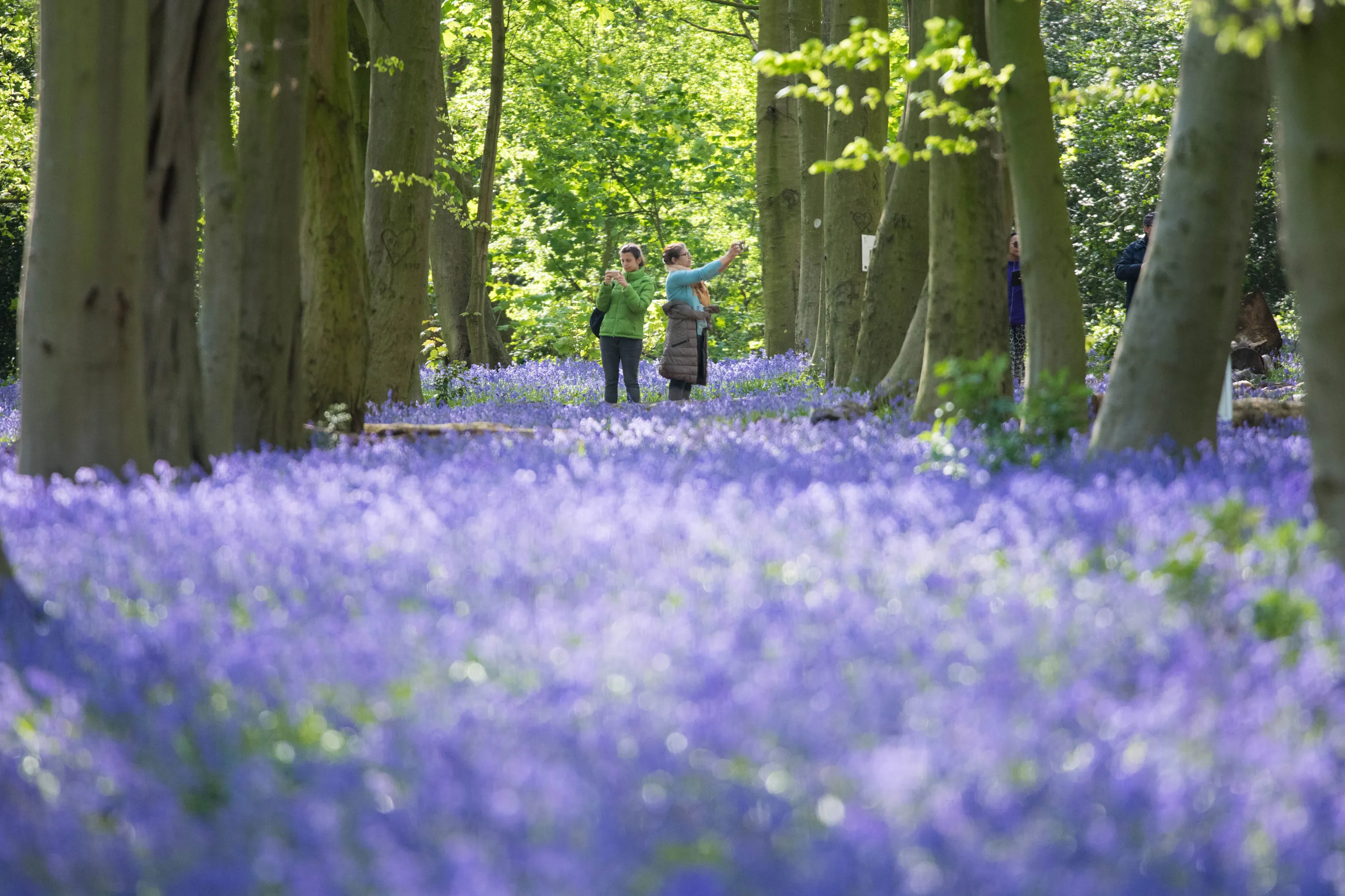 Walkers enjoy the bluebells in Wanstead Park in north east London today, Monday April 13, 2020 as the UK continues in lockdown to help curb the spread of the coronavirus. (Photo by Stefan Rousseau/PA Images via Getty Images)