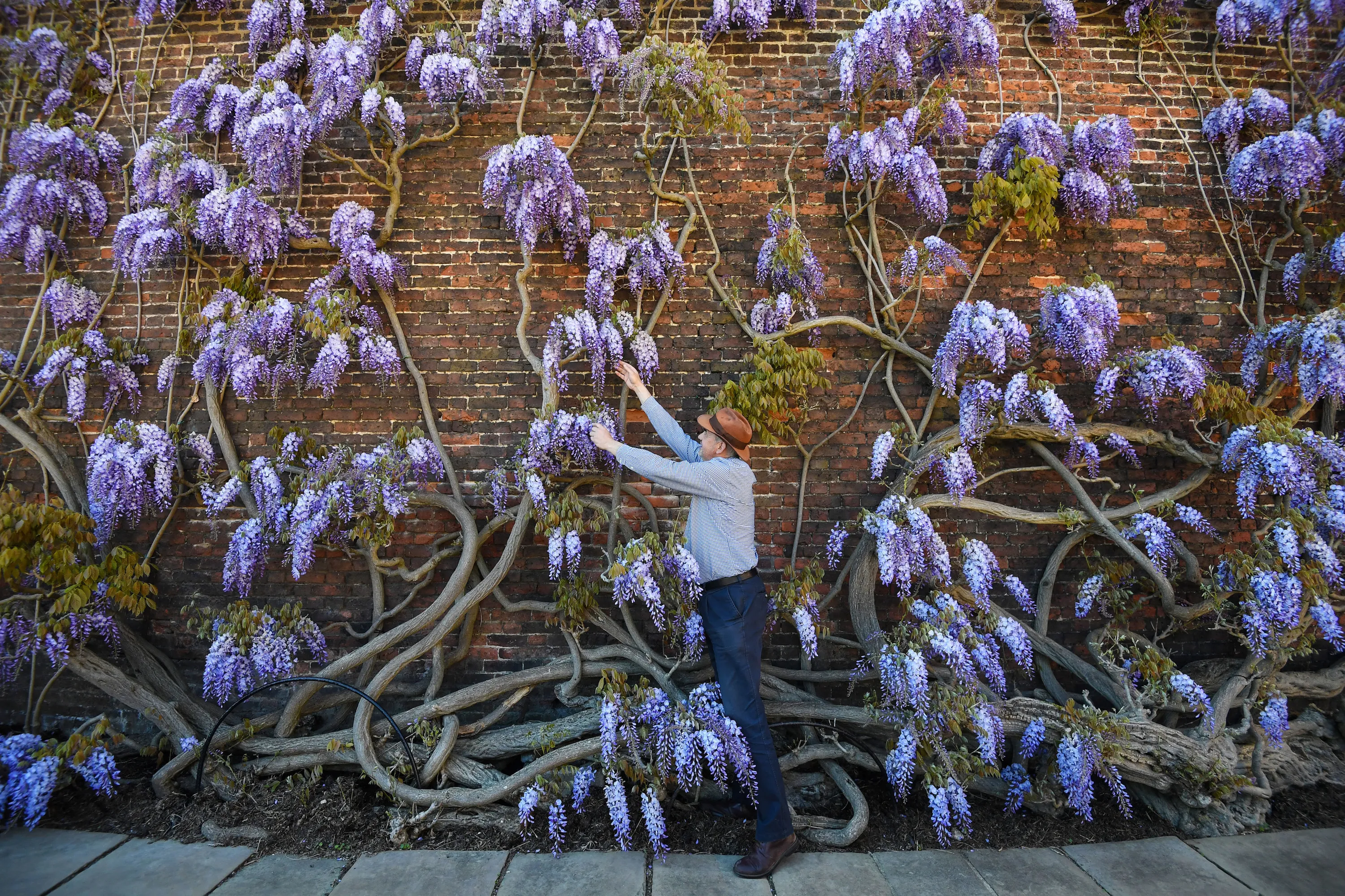 Gardens and Estates Operations Manager Graham Dillamore tends to wisteria, which was planted c1840, at Hampton Court Palace in London, England on April 20, 2020, which has been temporarily closed while the UK remains in lockdown during the coronavirus pandemic. (Photo by Kirsty O'Connor/PA Images via Getty Images)