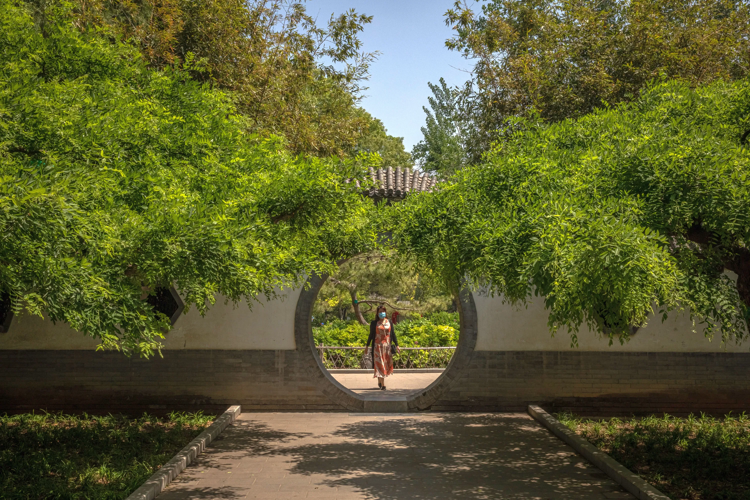 A woman wearing a protective face mask walks at Ditan park, in Beijing, China, 05 May 2020. Labor Day in the country kicked off with a long weekend and an extended holiday, from 01 to 05 May, after the tourism industry has been hit during the coronavirus disease (COVID-19) pandemic. (Photo by Roman Pilipey/EPA/EFE)