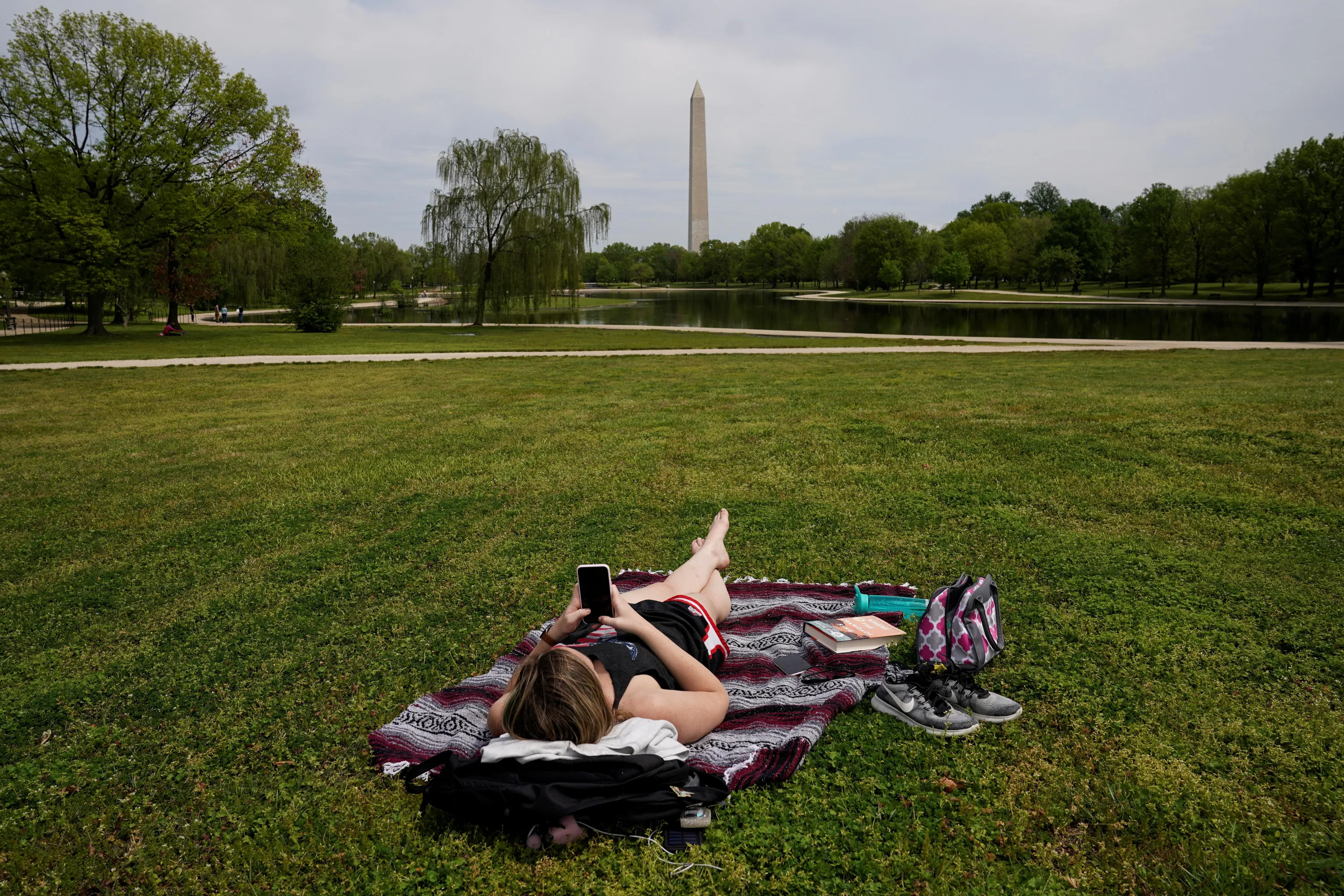 Chelsea Bruchs enjoys a nice day on the National Mall as the coronavirus disease (COVID-19) pandemic continues in Washington, U.S., April 29, 2020. (Photo by Kevin Lamarque/Reuters)