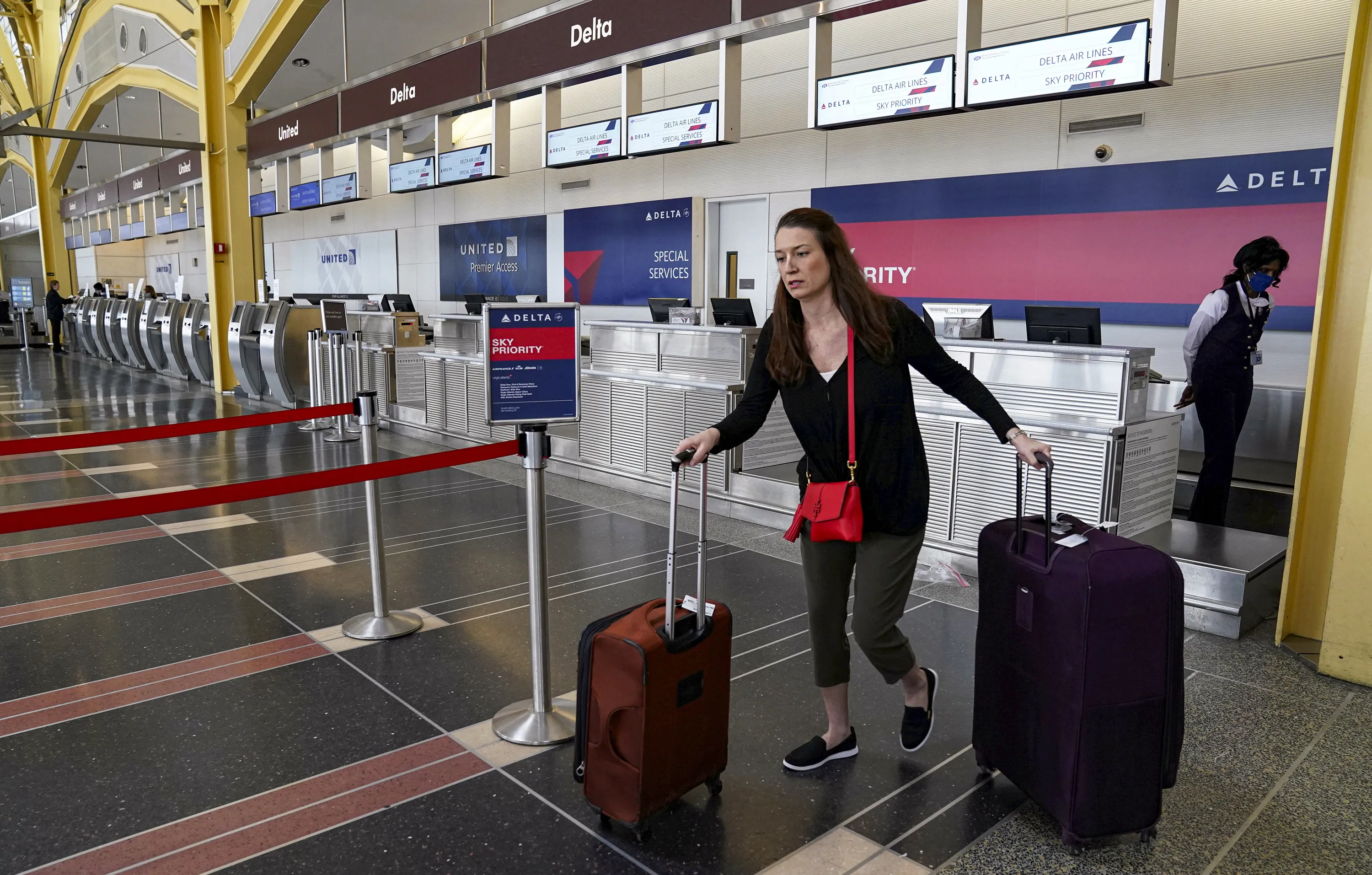 A lone passenger leaves a Delta Airlines counter after checking in for a flight at Reagan National airport as the outbreak of the novel coronavirus (COVID-19) pandemic continues to keep airline travel at minimal levels and the U.S. economy contracts in the first quarter at its sharpest pace since the Great Recession, in Washington, U.S. April 29, 2020. (Photo by Kevin Lamarque/Reuters)