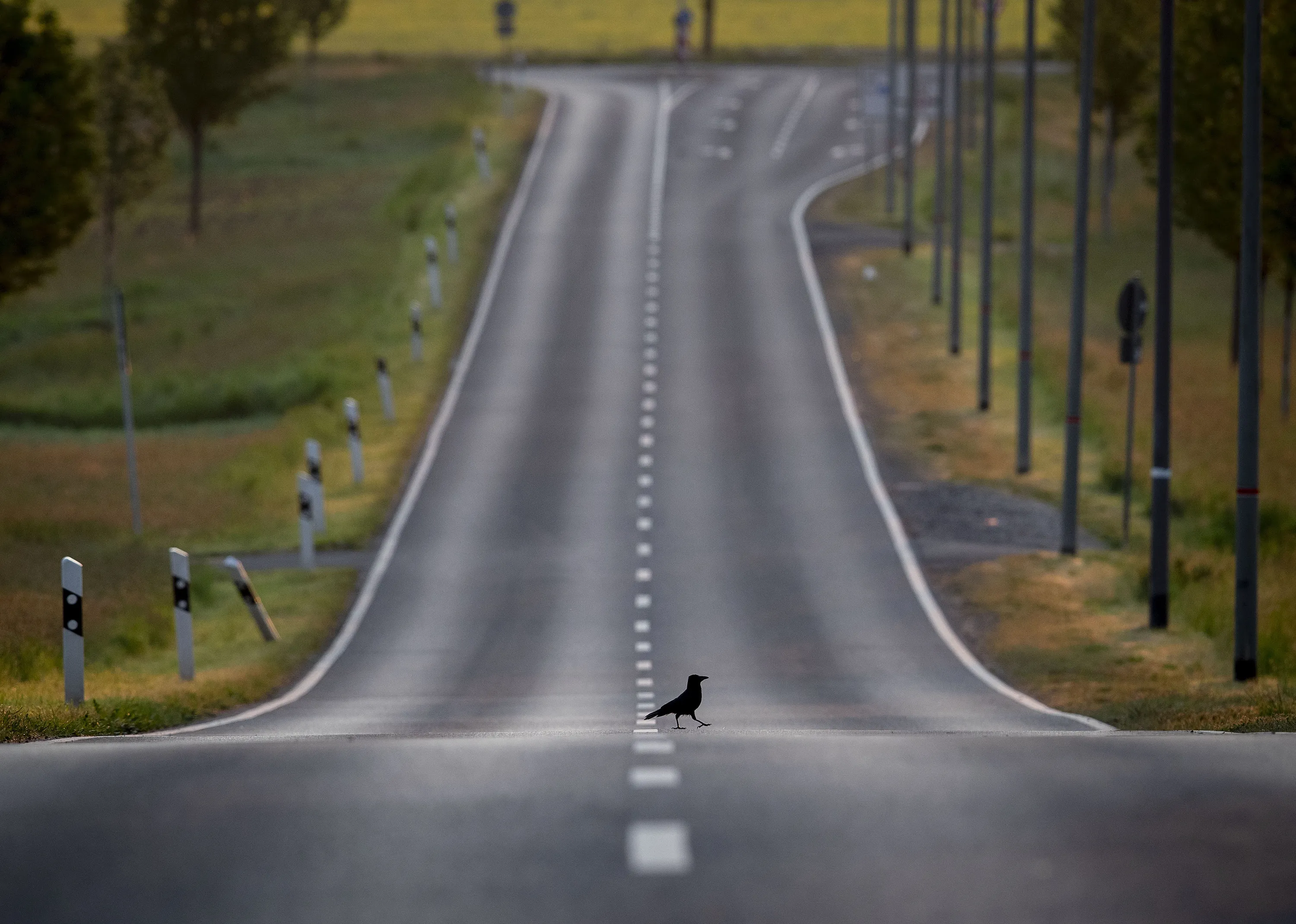 A crow walk over an empty road in Frankfurt, Germany, Tuesday, May 5, 2020. (Photo by Michael Probst/AP Photo)