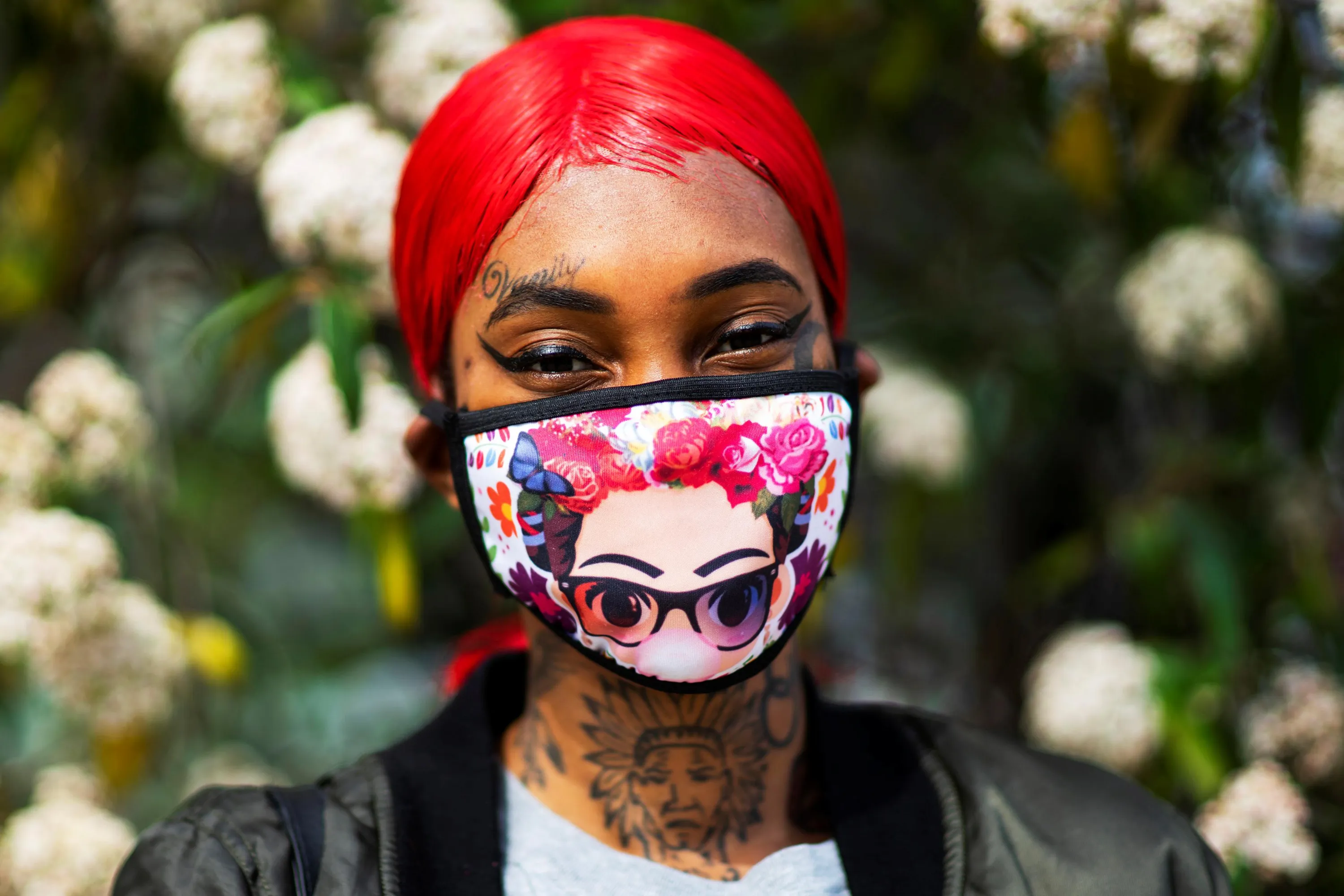 A woman wears a protective mask honouring Frida Kahlo as she poses for a picture at Grand Army Plaza, during the outbreak of the coronavirus disease (COVID-19) in the Brooklyn borough of New York City, New York, U.S., May 3, 2020. (Photo by Eduardo Munoz/Reuters)