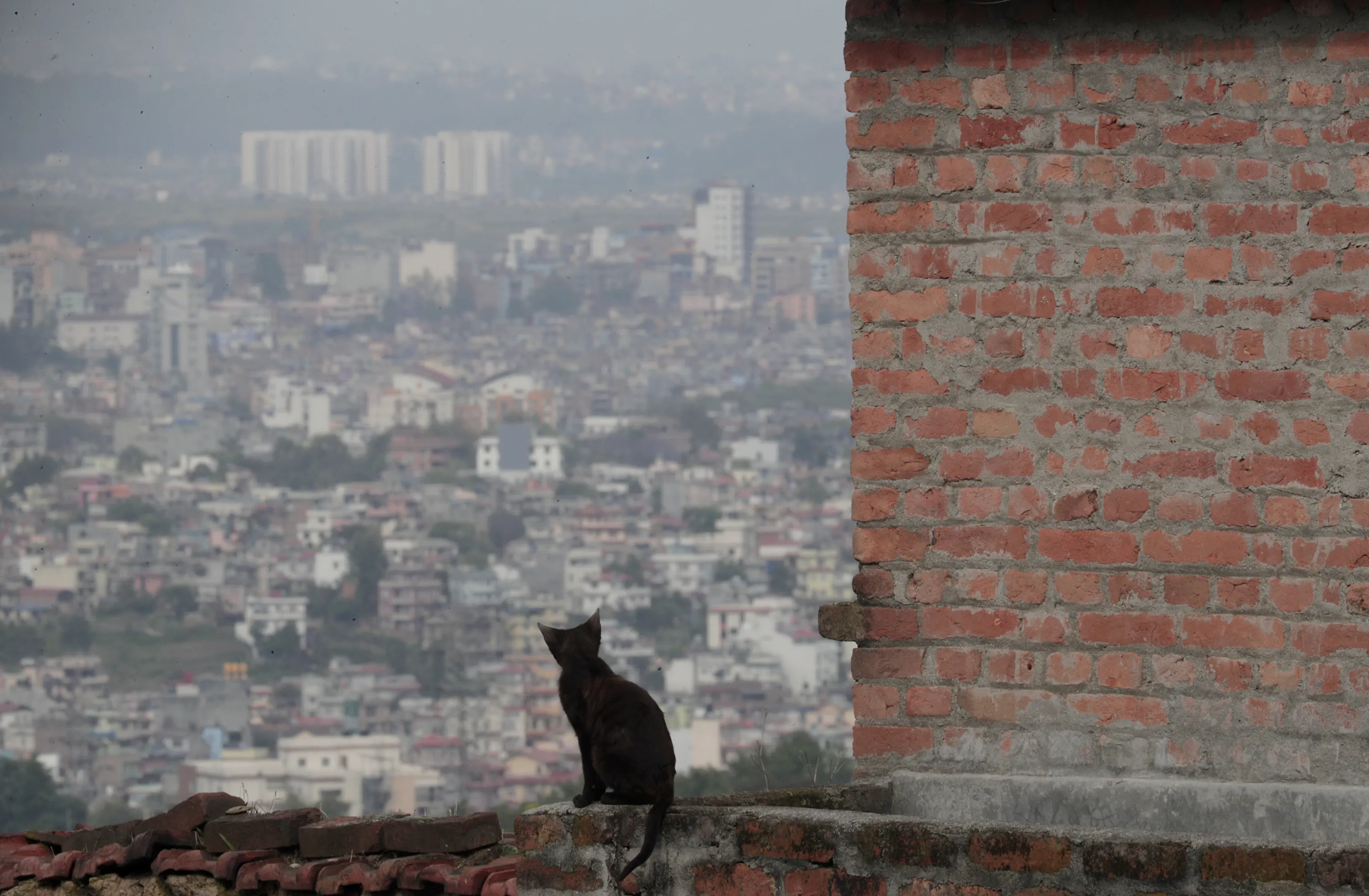 A cat sits on the balcony of a house during lockdown to control the spread of the new coronavirus in Kathmandu, Nepal, Friday, May 1, 2020. Nepal has extended the lockdown to May 7 and closure of the international border to May 13. (Photo by Niranjan Shrestha/AP Photo)