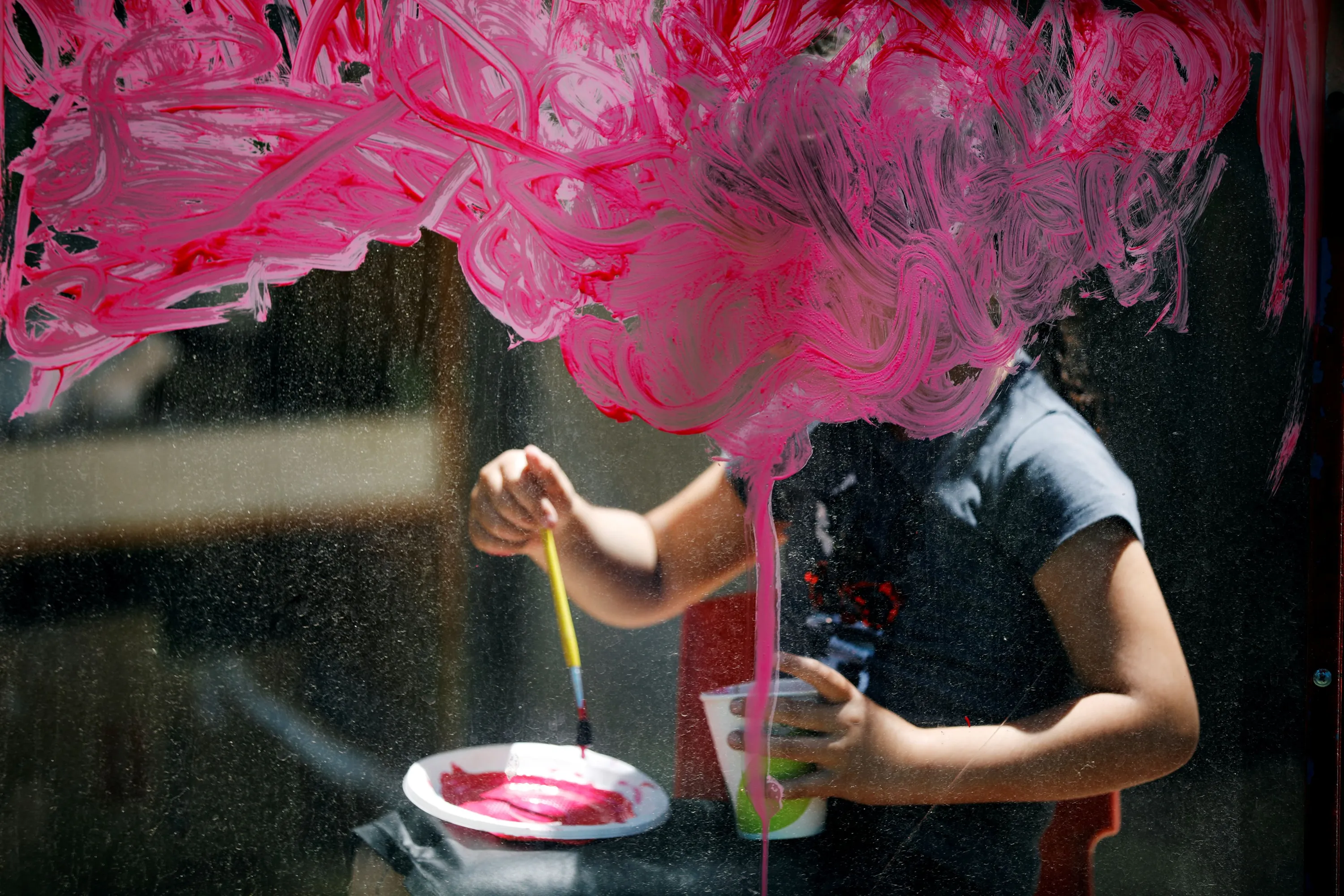 A girl paints on glass at her kindergarten as preschools across Israel opened under the further easing of restrictions to prevent the coronavirus disease (COVID-19) spread, in Jerusalem on May 10, 2020. (Photo by Amir Cohen/Reuters)