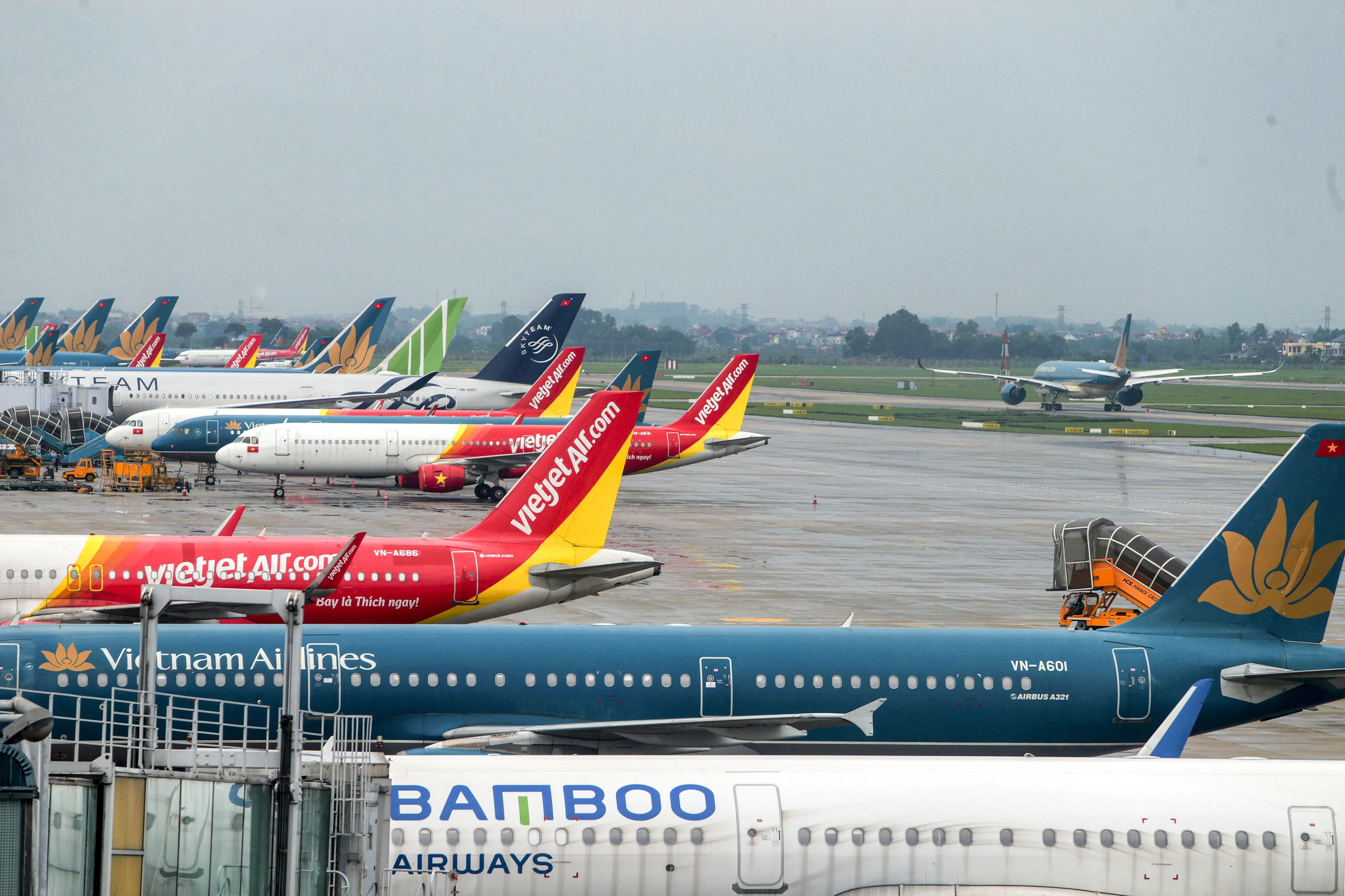General view of planes of the Vietnam Airlines, Vietjet Air, and Bamboo Airways grounded at Noi Bai International airport in Hanoi, Vietnam, 24 April 2020. The Ministry of Transport has recently allowed to reopen some domestic flights, as well as increasing the flight frequency between Hanoi and Ho Chi Minh City amid the ongoing coronavirus COVID-19 pandemic. (Photo by Minh Hoang/EPA/EFE/Rex Features/Shutterstock)