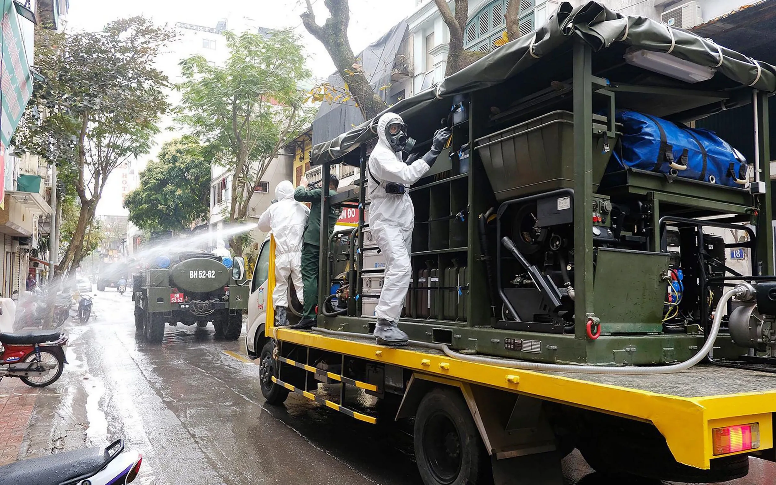 Soldiers from The High Command of Chemicals under Vietnam's Ministry of National Defence spray disinfectant as a precaution against the coronavirus on Truc Bach street in Hanoi, Vietnam, 07 March 2020. A 26-year-old Vietnamese woman recently back from Europe has tested positive for coronavirus, the first confirmed case after weeks. Since the outbreak began, the country has reported only 17 cases of COVID-19, 16 of whom have been cured and released from hospital. (Photo by EPA/EFE/Rex Features/Shutterstock/Stringer)