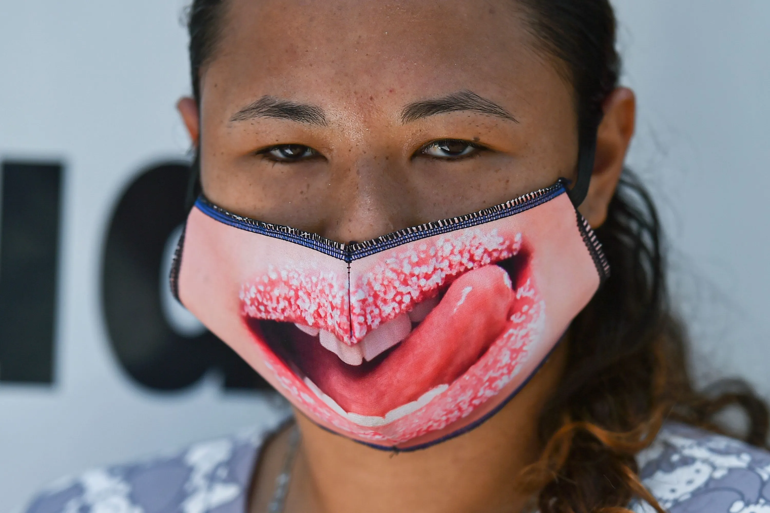 A woman wears a face mask as a preventive measure against the spread of the novel coronavirus COVID-19 at Santa Elena market in Cali, Colombia, on May 15, 2020. (Photo by Luis Robayo/AFP Photo)