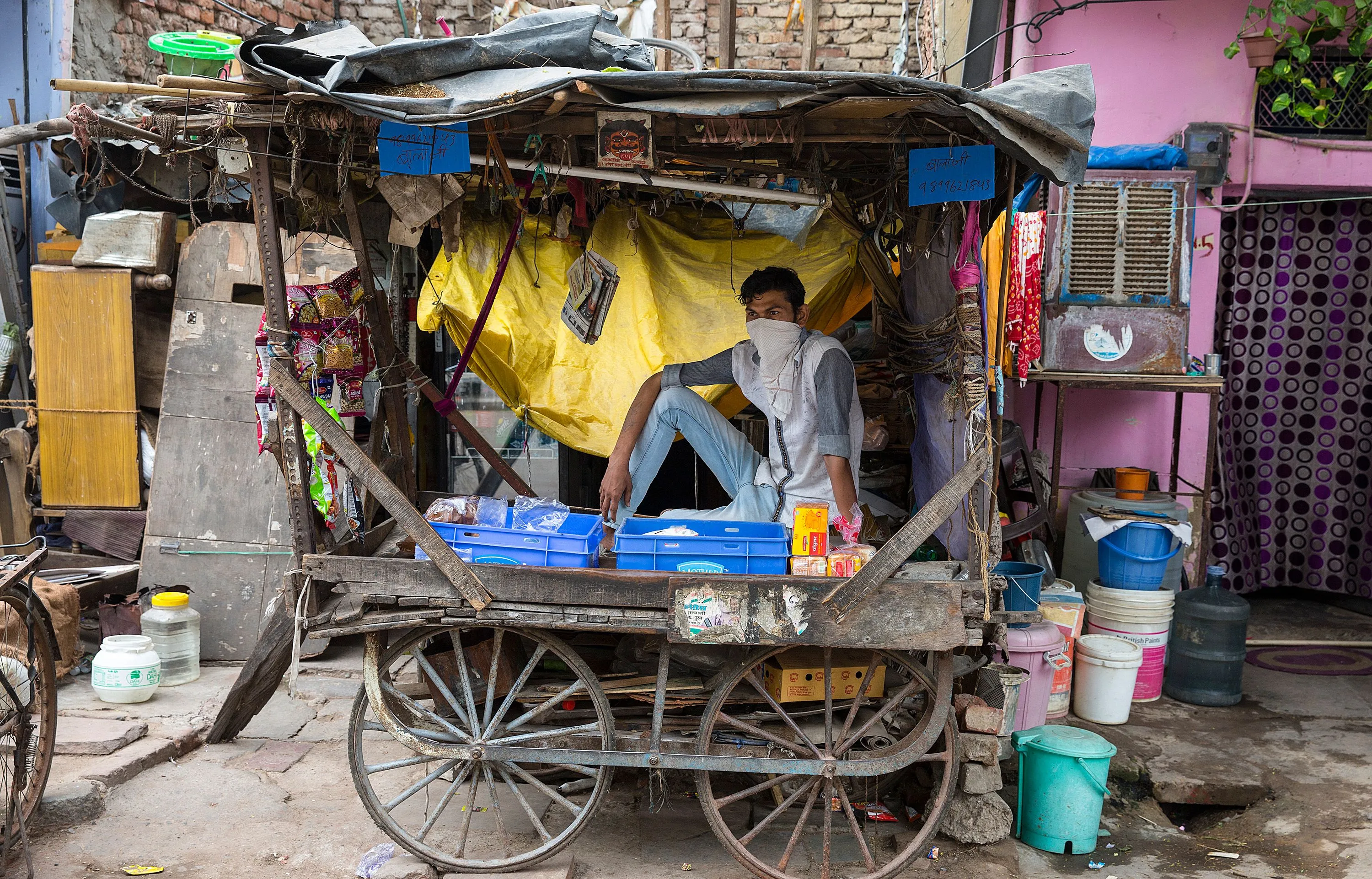 A vendor sells groceries on a street during the lockdown in New Delhi, India, May 13, 2020. Indian Prime Minister Narendra Modi on Tuesday announced a special economic package of 267 billion U.S. dollars to make the country self-reliant amid a nationwide COVID-19 lockdown. (Photo by Chine Nouvelle/SIPA Press/Rex Features/Shutterstock)