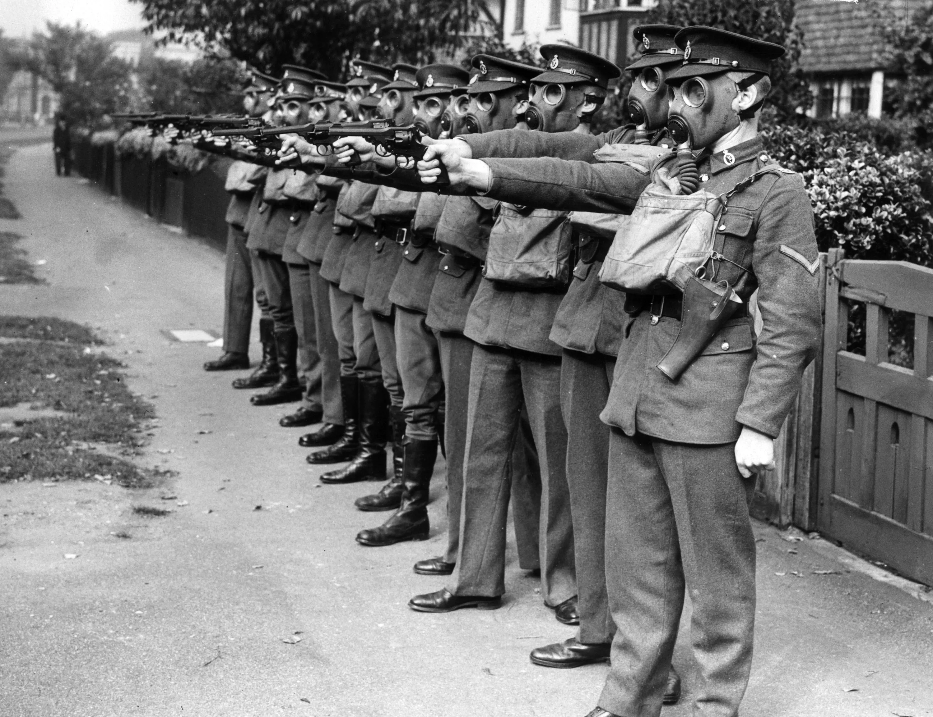 A detachment of soldiers stationed in the Home Counties undergoing revolver training in suburbia. UK, 29th September 1939. (Photo by Reg Speller/Fox Photos)