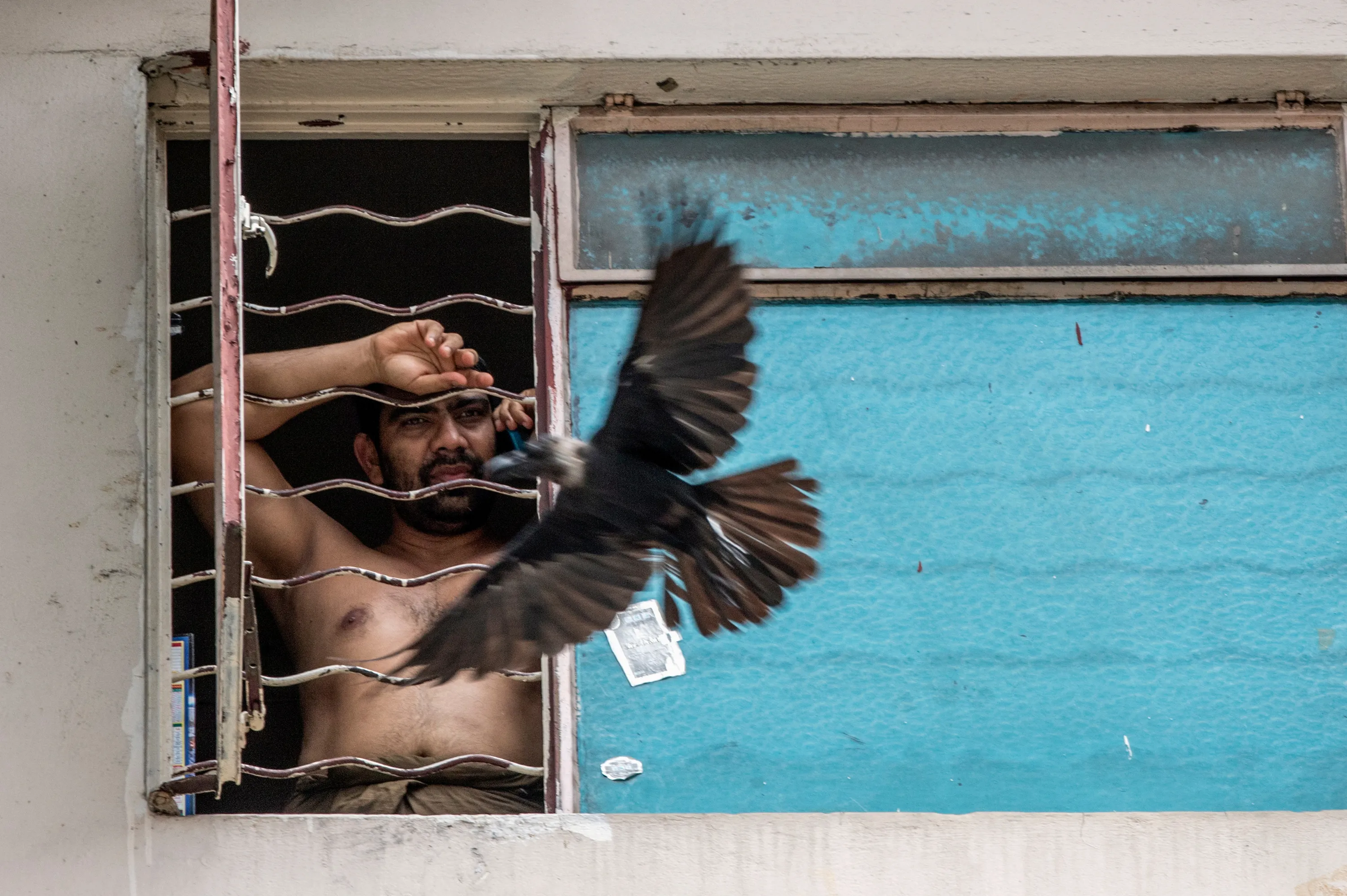 A quarantined resident looks outside their window, in Kuala Lumpur, Malaysia, 07 April 2020. The area is on lockdown in order to curb the spread of coronavirus and the disease Covid-19. (Photo by Ahmad Yusni/EPA/EFE)