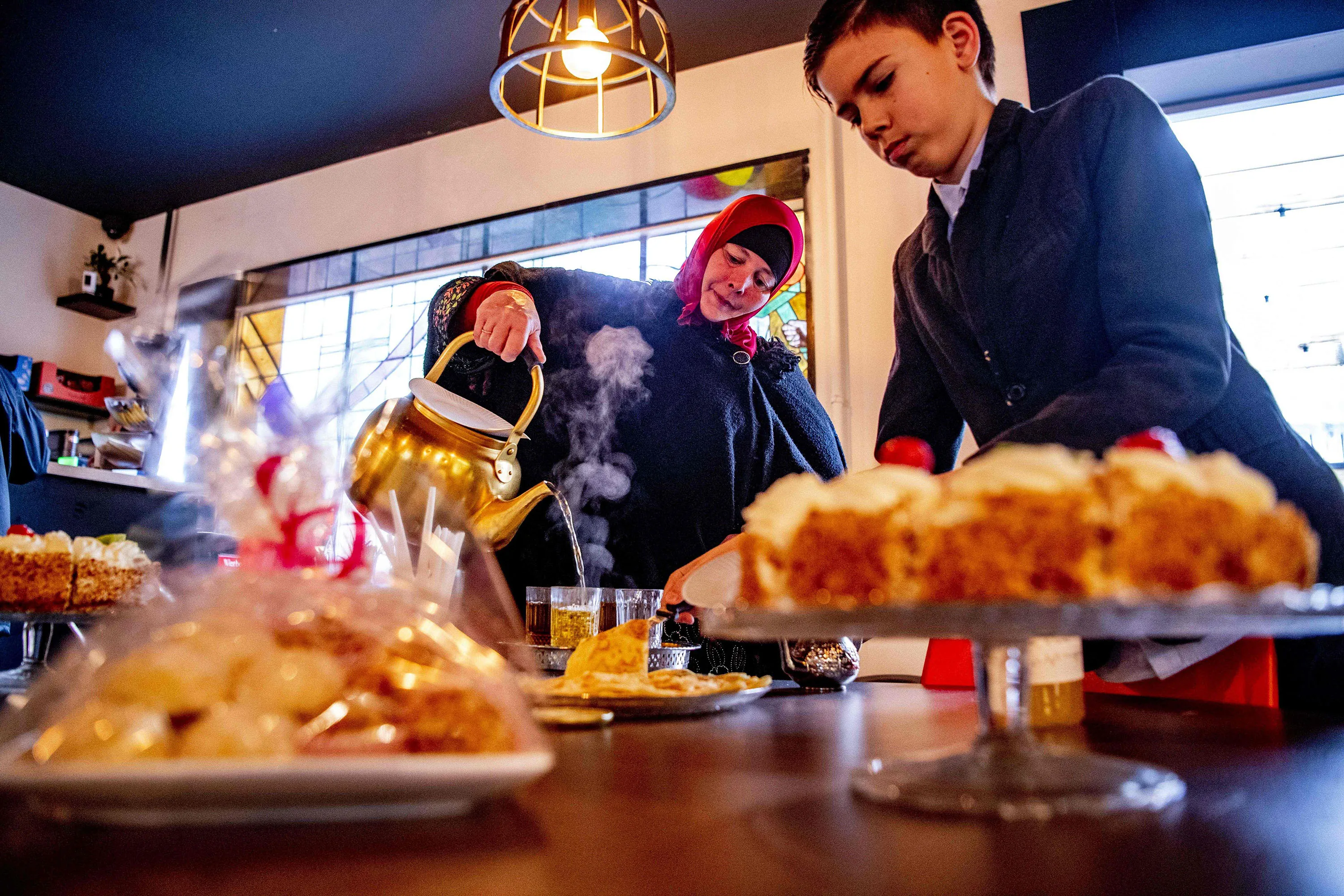 Muslim faithfuls gather in the mosque of Centrum Middenweg in Rotterdam, on May 24, 2020, for the Eid Al-Fitr to celebrate the end of the Islamic fasting period of Ramadan. Due to the COVID-19 pandemic, no more than thirty people are admitted, while most mosques remain completely closed to curb the spread of the novel coronavirus. Muslims worldwide celebrate Eid Al-Fitr, end of daily fasting during holly month of Ramadan, as one of two most important holidays. (Photo by Robin Utrecht/ANP/AFP Photo)
