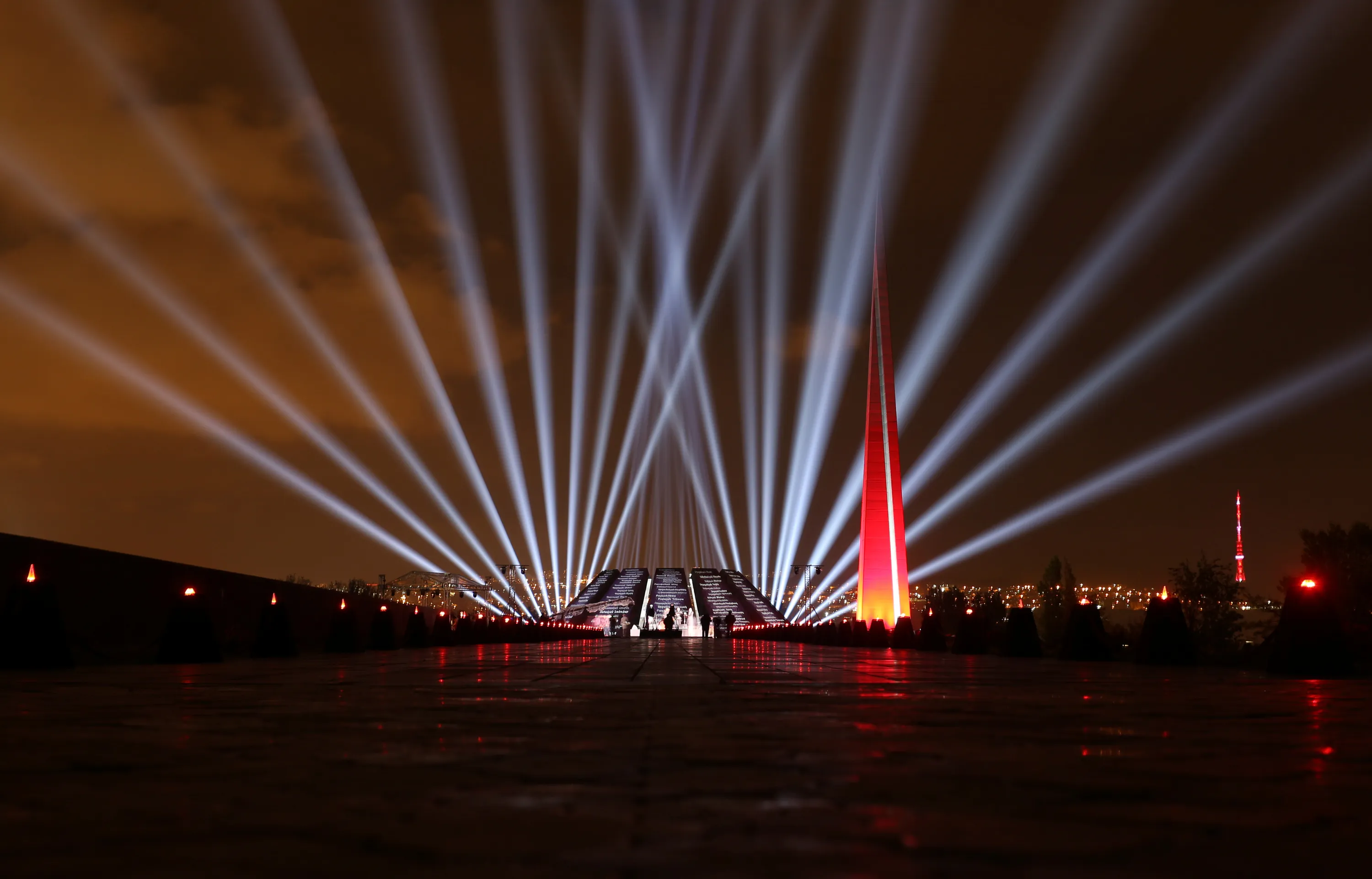 A view shows the illuminated Tsitsernakaberd memorial during an event commemorating victims of the 1915 mass killing of Armenians by Ottoman Turks in Yerevan, Armenia on April 24, 2020. (Photo by Vahram Baghdasaryan/Photolure via Reuters)