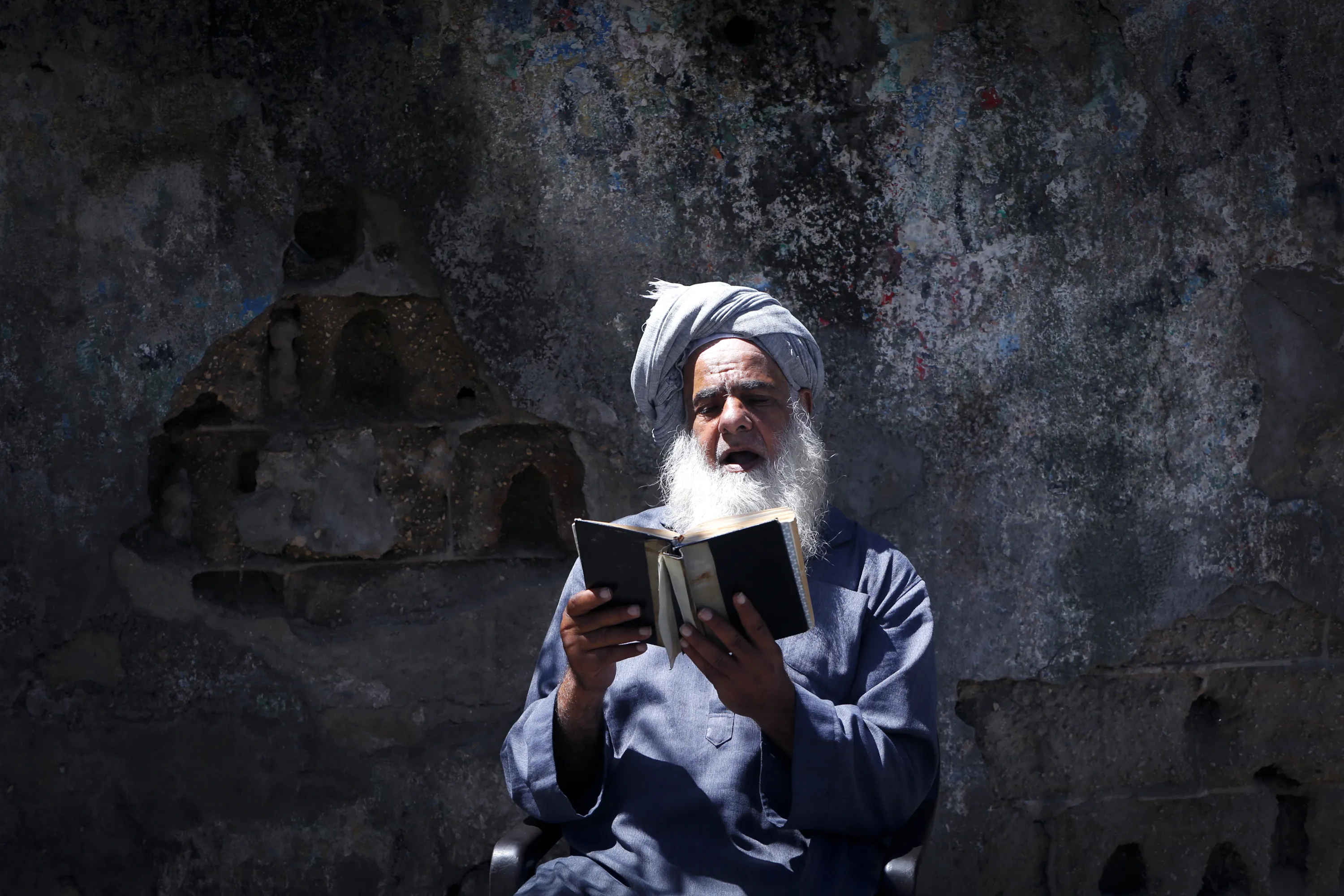 A Palestinian man reads the Koran during the holy month of Ramadan in Gaza City during the COVID-19 coronavirus pandemic on April 28, 2020. (Photo by Mohammed Abed/AFP Photo)