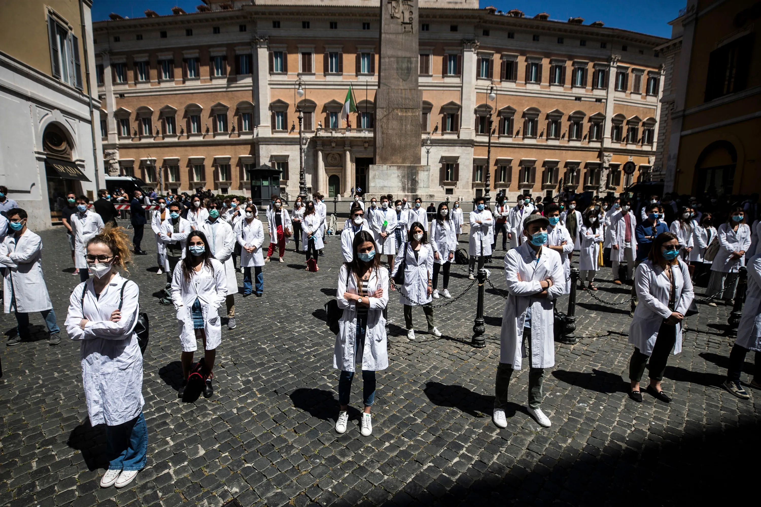 Medical students, graduate students and young doctors protest in front of the Italian Parliament during the second phase of the coronavirus disease (COVID-19) pandemic, emergency in Rome, Italy, 27 May 2020. According to media reports, demonstrators denounced the fragility of the national health system. (Photo by Angelo Carconi/EPA/EFE)