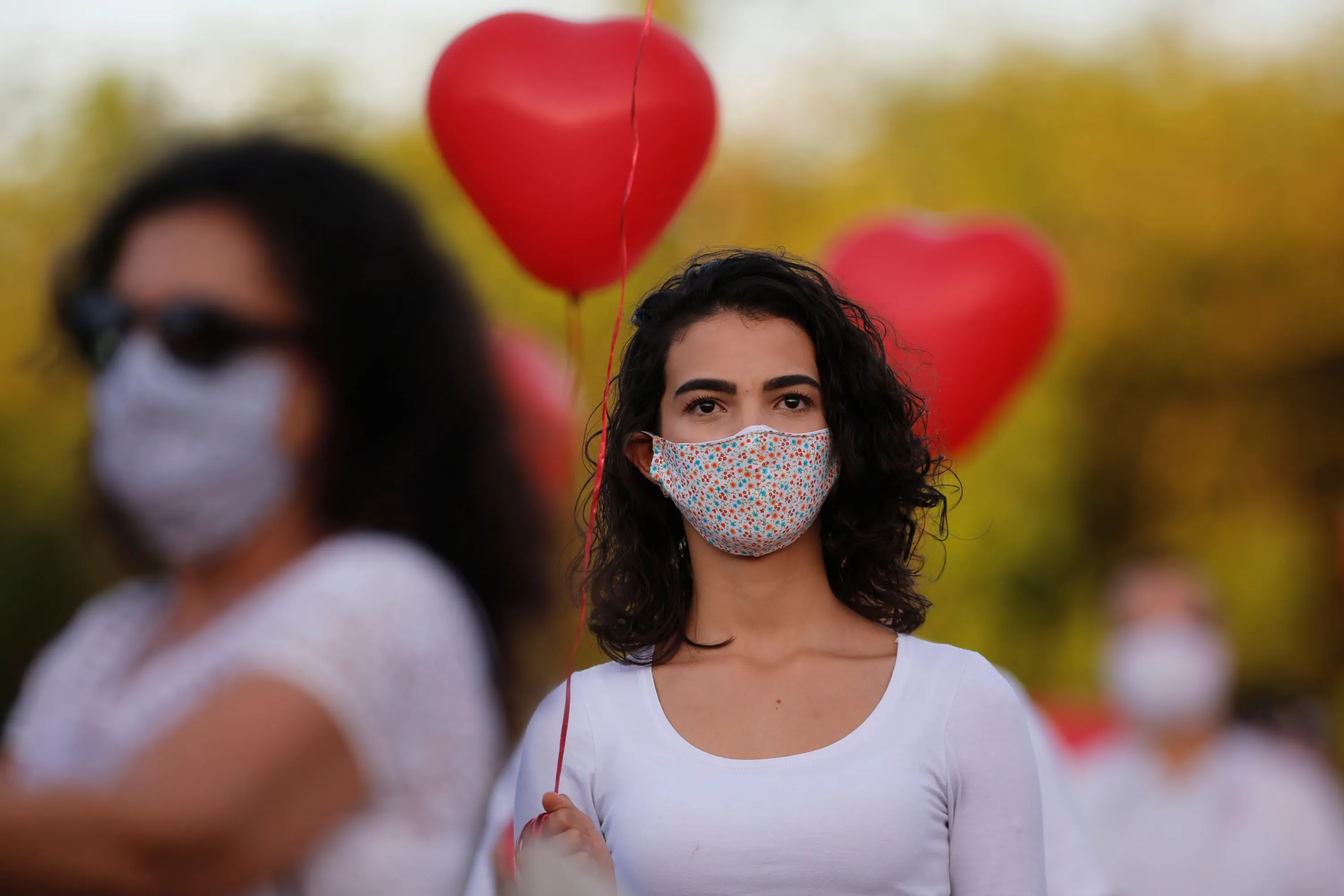 Artists perform with red balloons at a protest in honor of people who died from coronavirus disease (COVID-19) during its outbreak in Brasilia, Brazil on June 1, 2020. (Photo by Adriano Machado/Reuters)