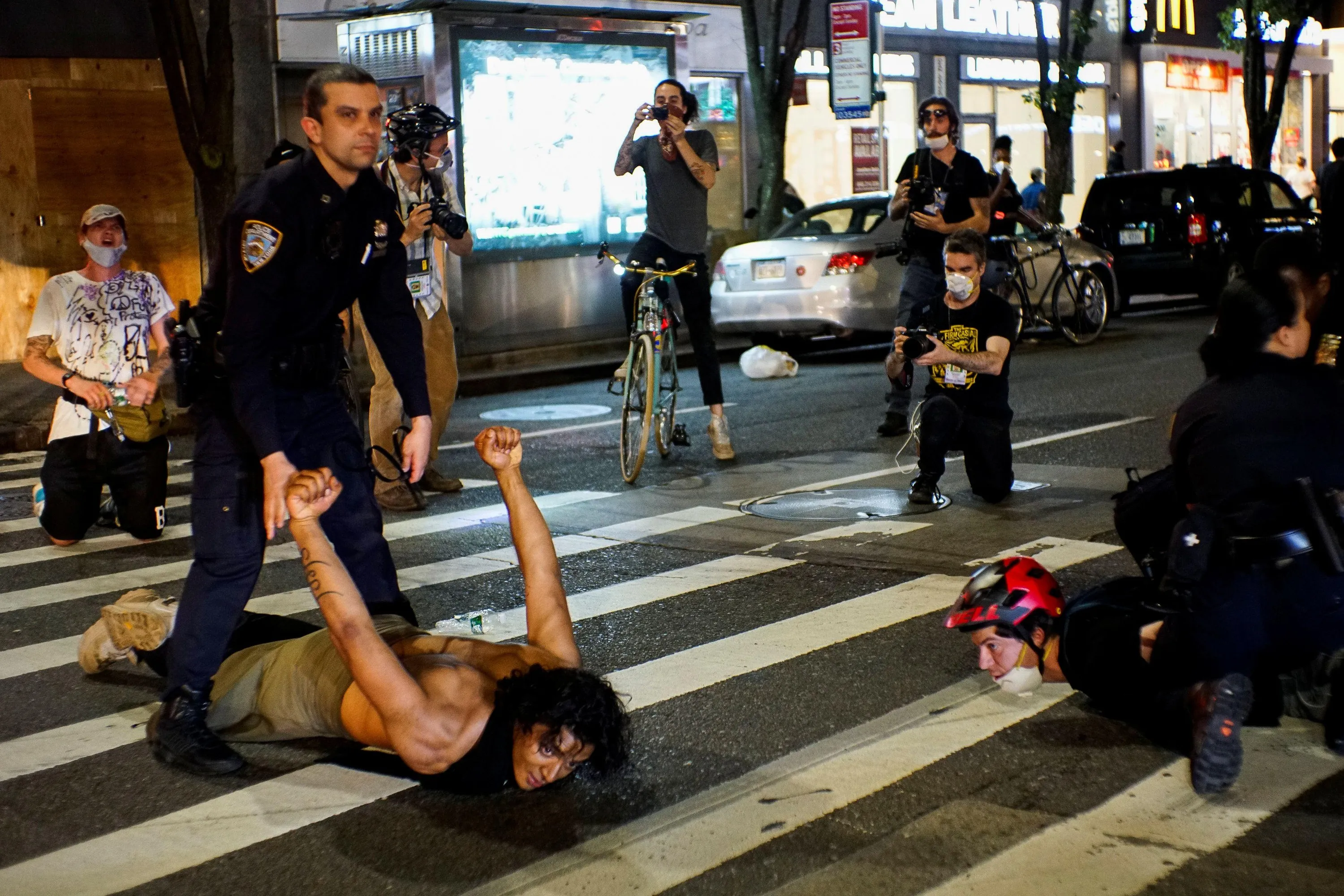 Demonstrators are detained by police officers during a protest against the death in Minneapolis police custody of George Floyd, in New York City, U.S., June 3, 2020. (Photo by Eduardo Munoz/Reuters)