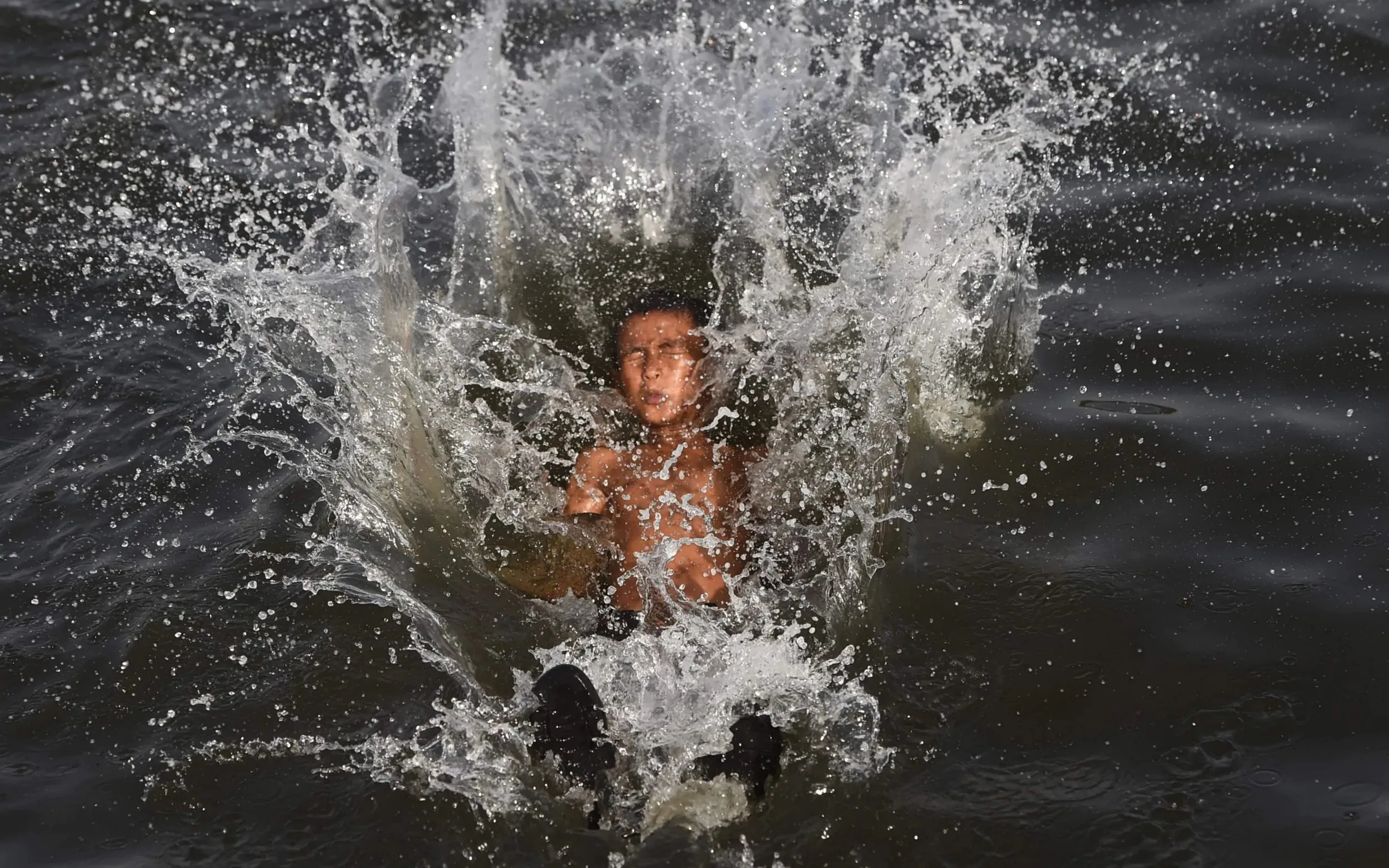 A youth cools off in the Arabian sea amid rising temperatures, in Karachi on May 28, 2020. (Photo by Asif Hassan/AFP Photo)