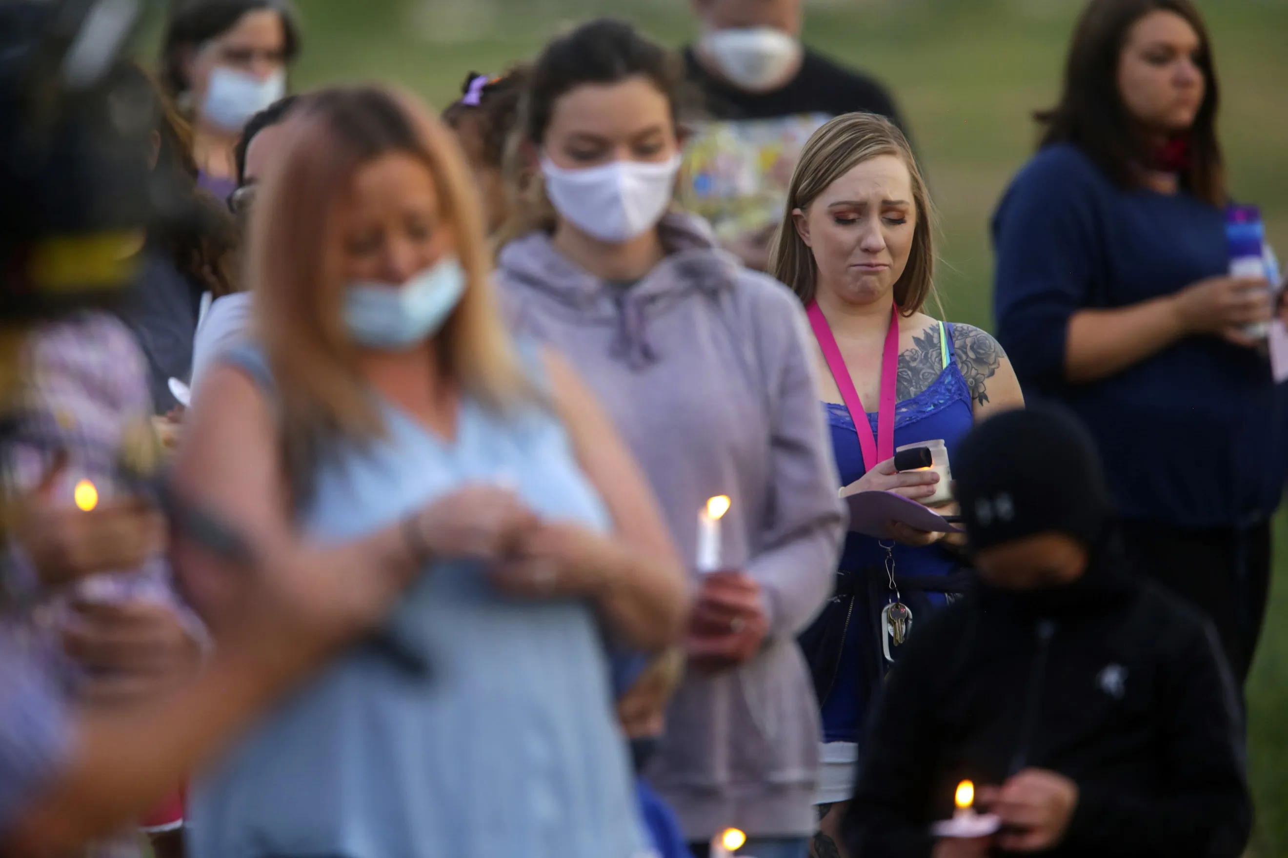 Visitors listen to “In the Arms of an Angel”, during a memorial service for Tylee Ryan and Joshua “JJ” Vallow in Idaho Falls, Idaho, on Friday, June 12, 2020. Tylee and JJ's remains were found on Chad Daybell's property after a months-long search for the children. Chad Daybell and Lori Vallow Daybell are in custody. (Photo by John Roark/The Idaho Post-Register via AP Photo)