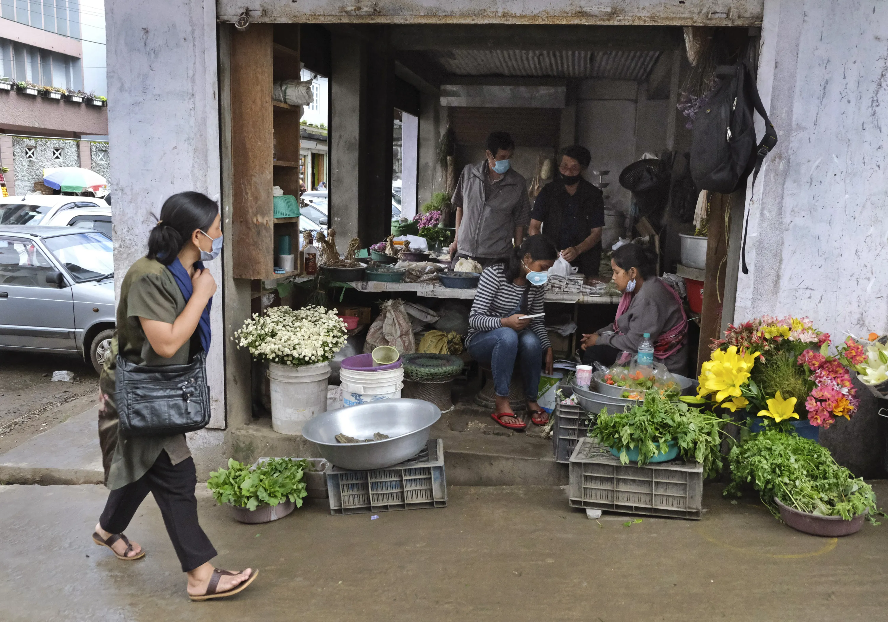 A Naga woman walks past shops in a market area in Kohima, capital of the northeastern Indian state of Nagaland, Wednesday, June 10, 2020. (Photo by Yirmiyan Arthur/AP Photo)