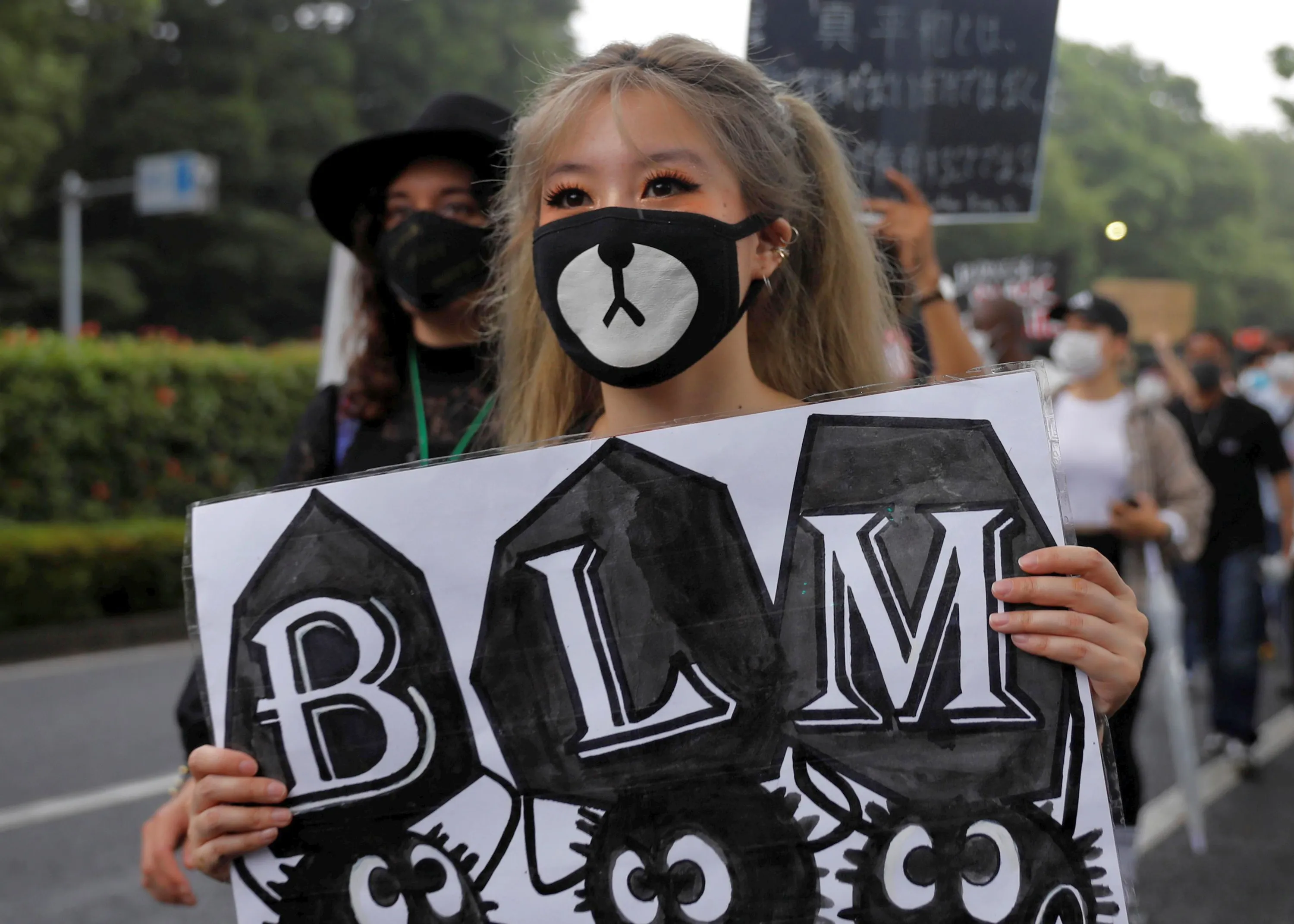 People wearing face masks march during a Black Lives Matter protest following the death in Minneapolis police custody of George Floyd, in Tokyo, Japan on June 14, 2020. (Photo by Kim Kyung-Hoon/Reuters)