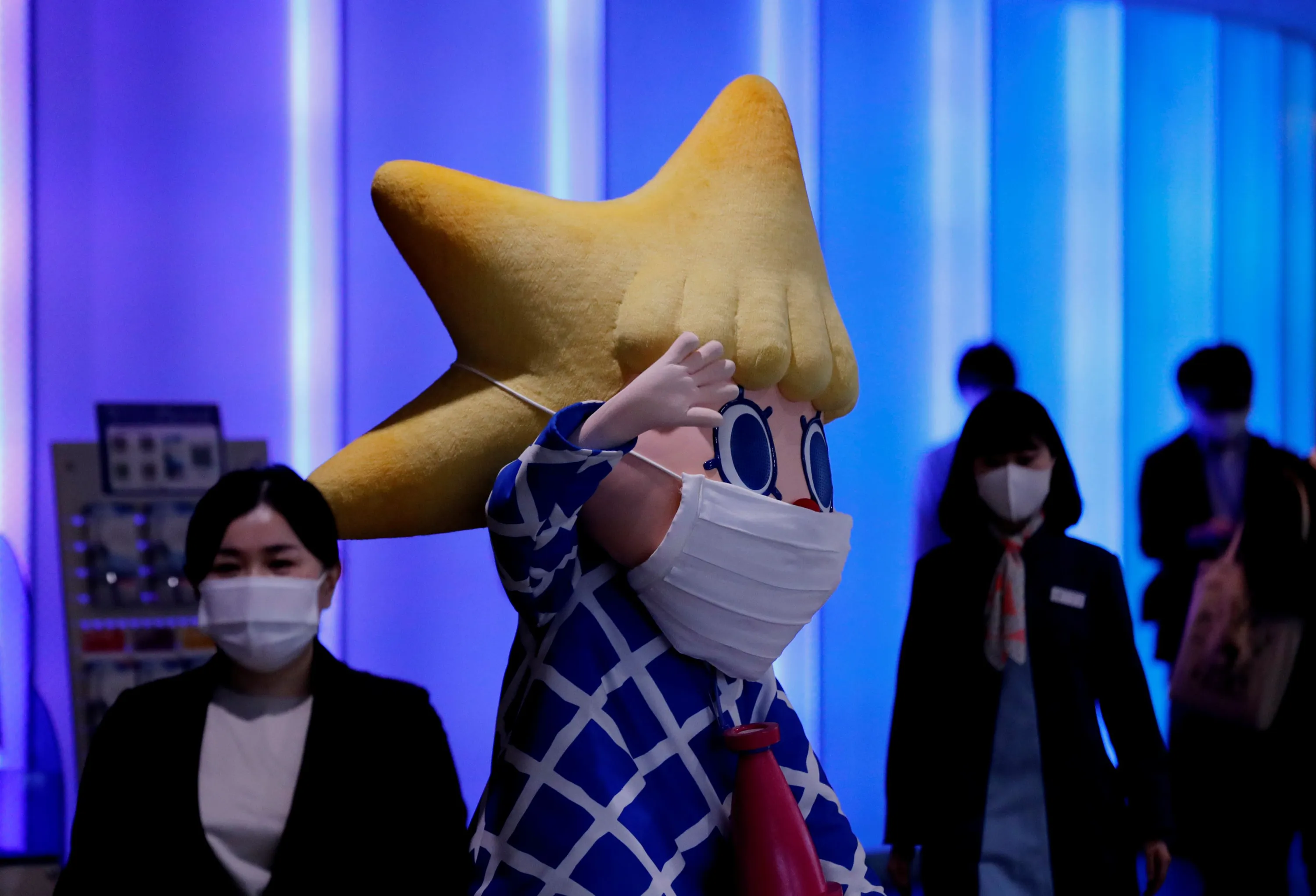 Tokyo Skytree mascot Sorakara-chan wears a mask at an event for the reopening of Tokyo Skytree after a 3-month closure due to the coronavirus disease (COVID-19) outbreak, in Tokyo, Japan, June 1, 2020. (Photo by Kim Kyung-Hoon/Reuters)