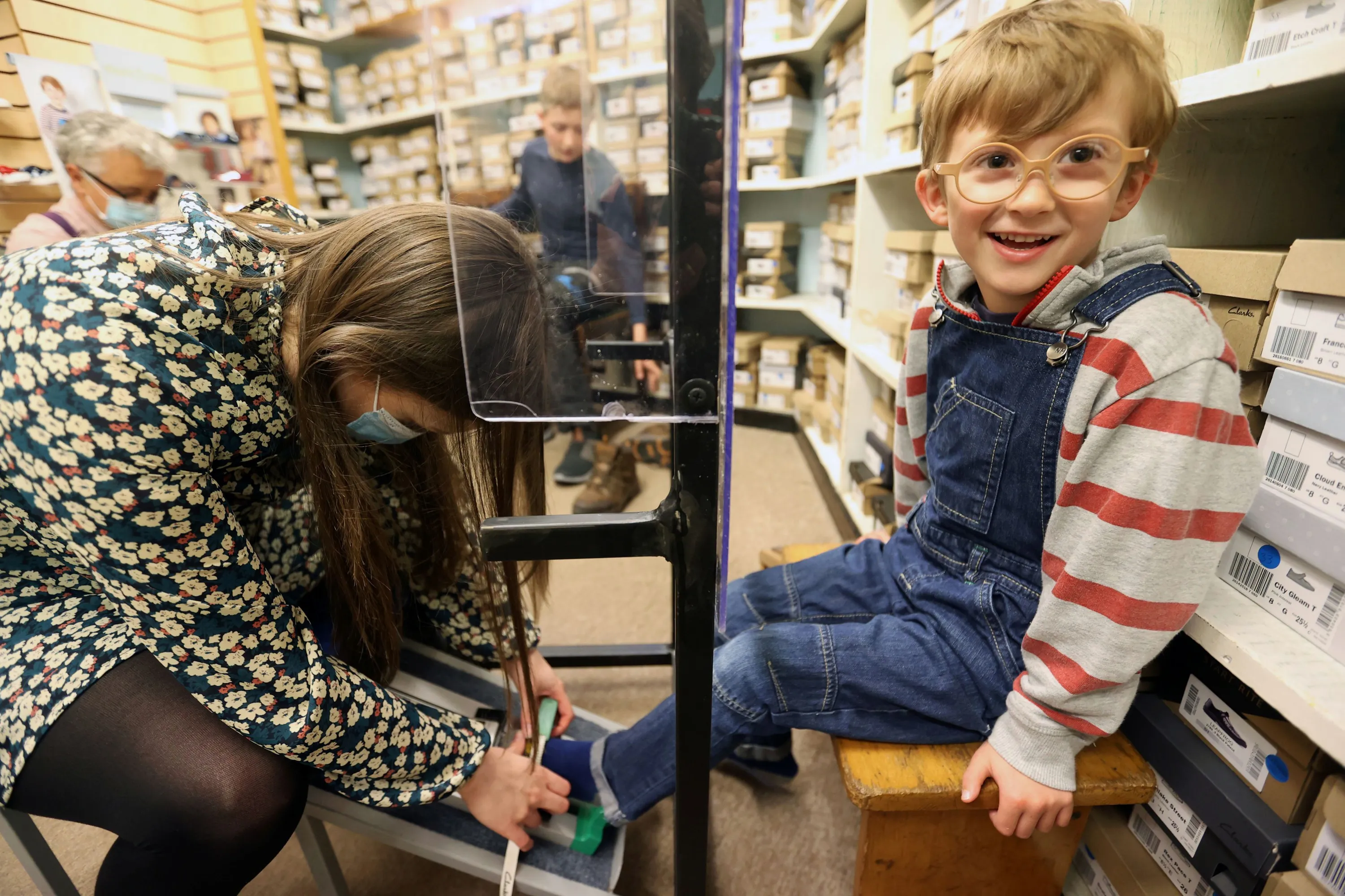 An employee wears a protective face mask as she works at Brassington Bros Ltd shoe store, as shops re-open following the outbreak of the coronavirus disease (COVID-19), in Hanley, Britain on June 15, 2020. (Photo by Carl Recine/Reuters)