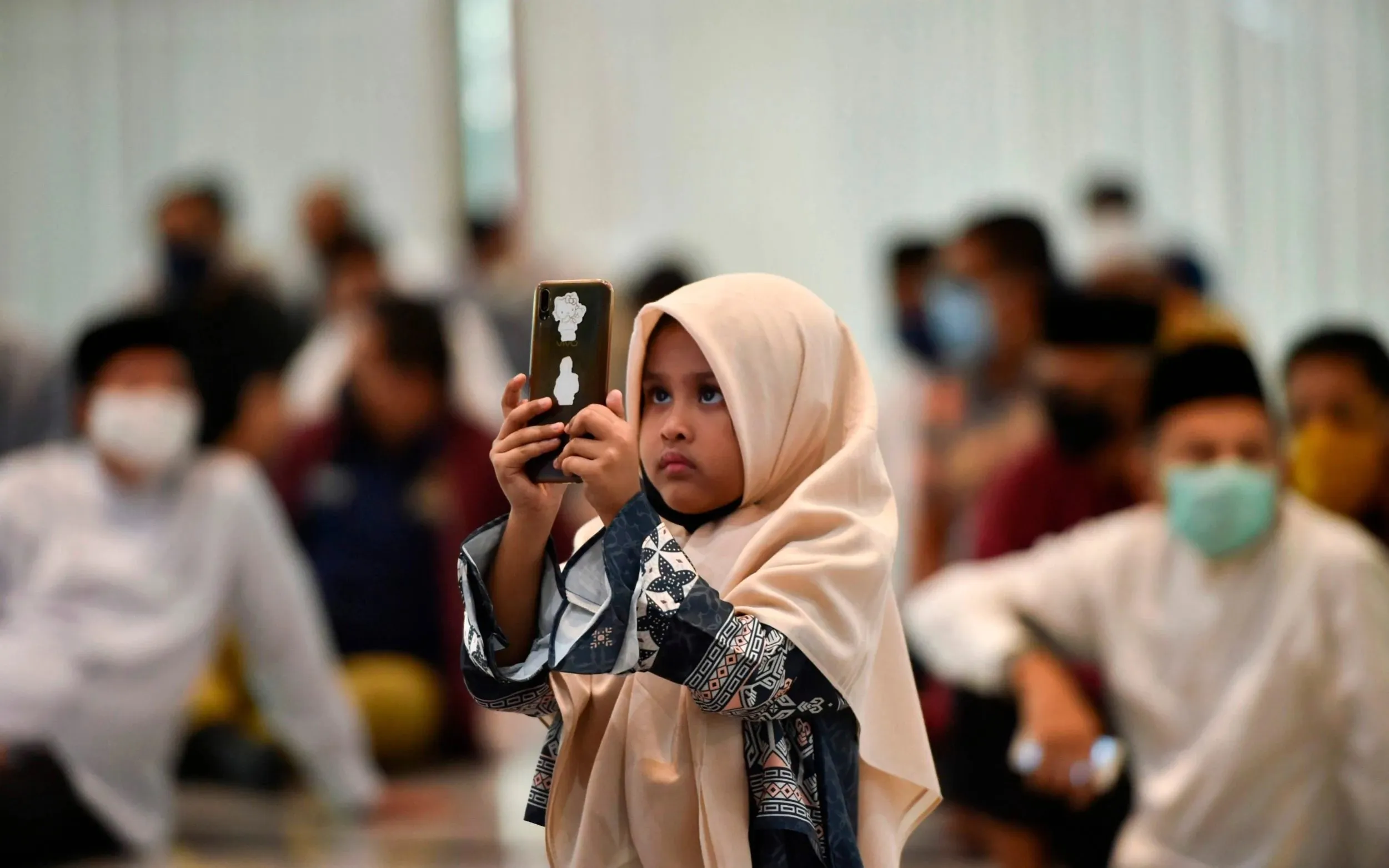 A child takes a photograph during a wedding ceremony at a mosque in Banda Aceh on June 3, 2020. (Photo by Chaideer Mahyuddin/AFP Photo)