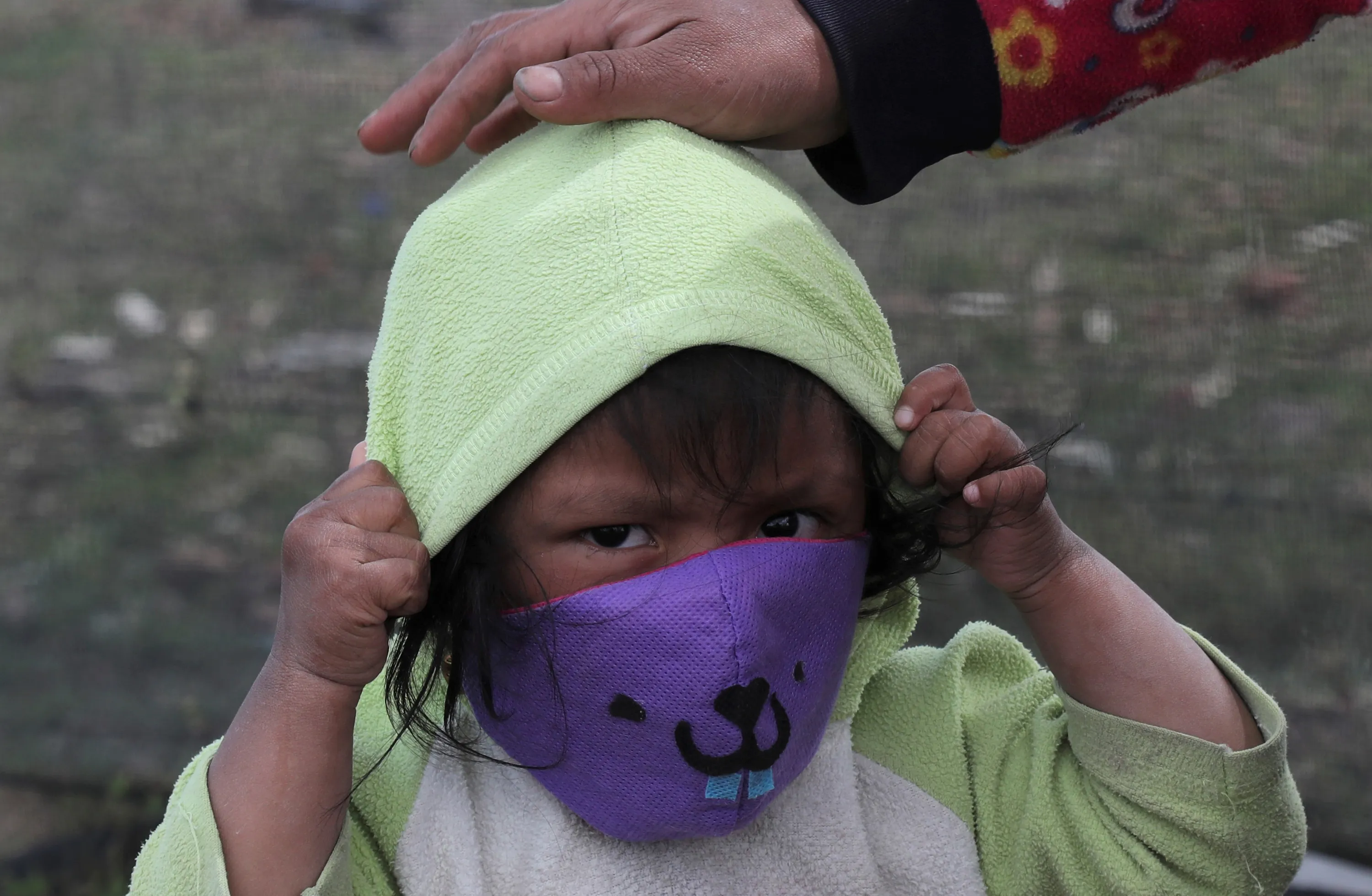 An Indigenous child puts on a mask to curb the spread of the new coronavirus while walking with his mother through the fields in Cayambe, Ecuador, Wednesday, June 17, 2020. Indigenous communities in Ecuador have implemented their security methods to prevent the virus from entering their lands, especially since they do not have health centers that can take care of them if the disease becomes serious. (Photo by Dolores Ochoa/AP Photo)