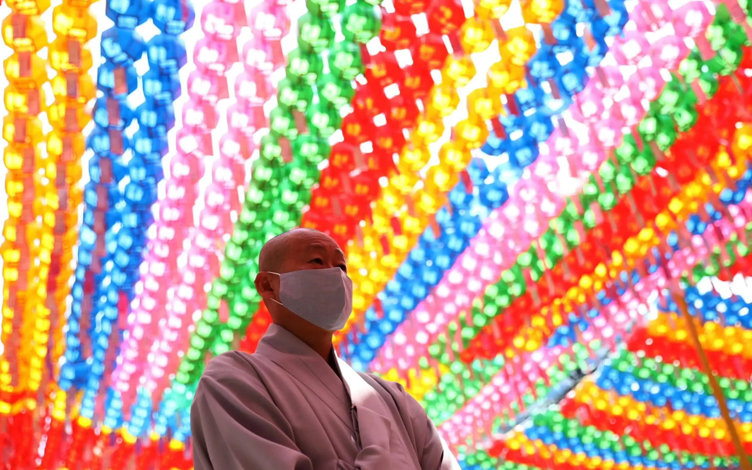 A buddhist monk wears mask as a preventive measure against the coronavirus (COVID-19), as he attends a ceremony of Buddha's birthday at Jogyesa Temple on May 30, 2020 in Seoul, South Korea. South Korea's daily number of new coronavirus cases dropped below 40 Saturday, amid a stepped-up push to contain cluster infections traced to a distribution center just west of Seoul and fend off a potential virus resurgence. The country logged 39 additional COVID-19 cases, bringing the total caseload to 11,441, according to the Korea Centers for Disease Control and Prevention (KCDC). (Photo by Chung Sung-Jun/Getty Images)