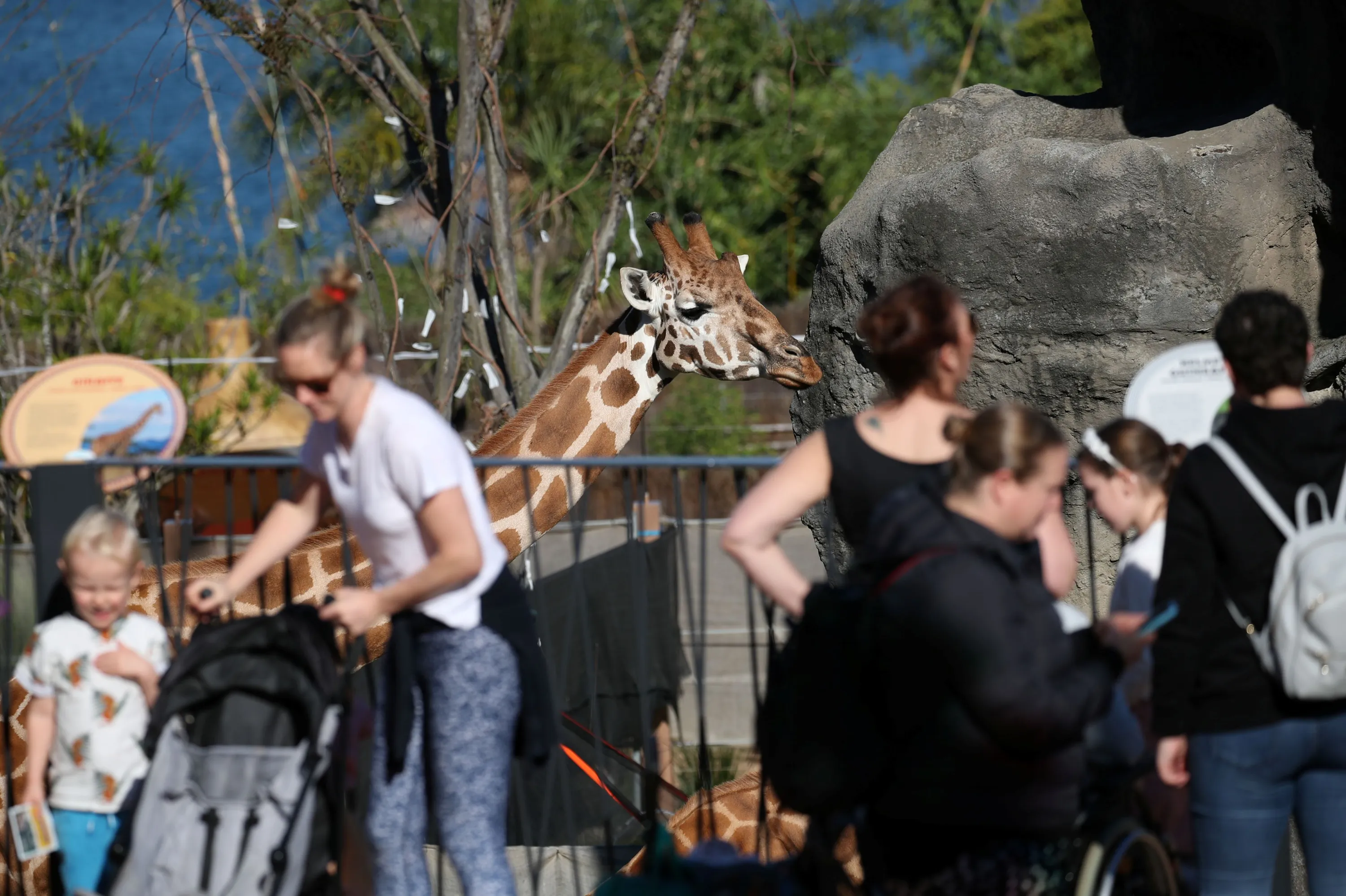 Visitors stand at the edge of a giraffe enclosure at Taronga Zoo Sydney as it re-opens to the public amidst the easing of the coronavirus disease (COVID-19) restrictions following an extended closure in Sydney, Australia, June 1, 2020. (Photo by Loren Elliott/Reuters)