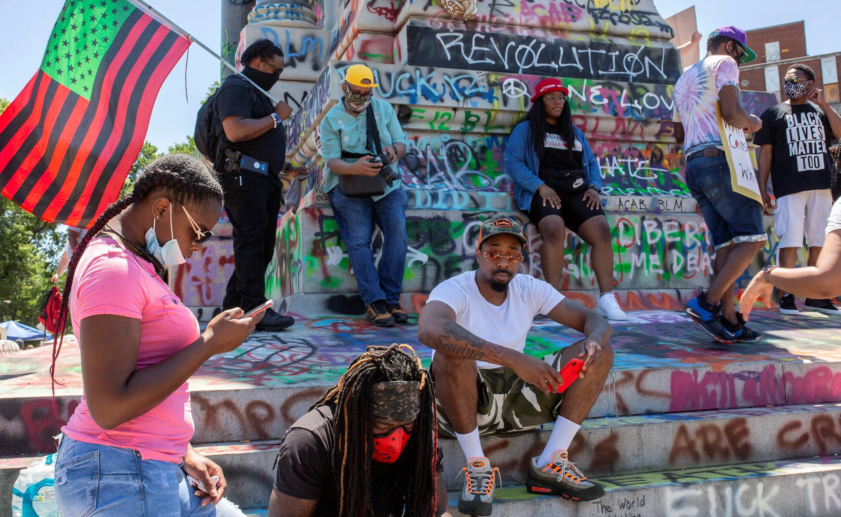 Protesters rally against racial inequality near the statue of Confederate General Robert E. Lee in Richmond, Virginia, June 13, 2020. A Virginia judge temporarily blocked Governor Ralph Northam from taking down the monument. (Photo by Jay Paul/Reuters)