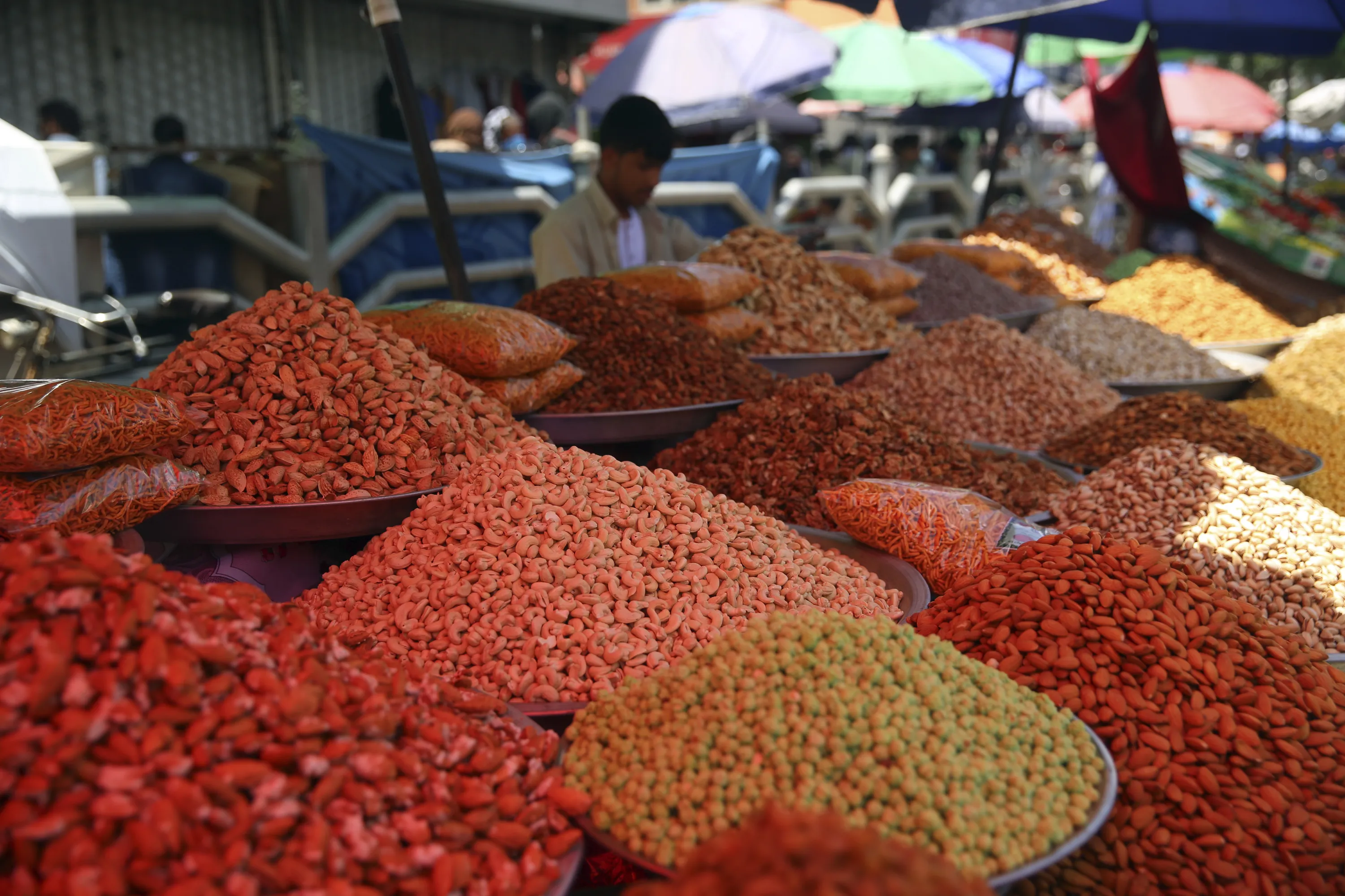 An Afghan dry fruits vendor waits for customers at a market ahead of the upcoming Eid al-Fitr holiday to mark the end of the holy fasting month of Ramadan, in Kabul, Afghanistan, Friday, May 22, 2020. (Photo by Rahmat Gul/AP Photo)
