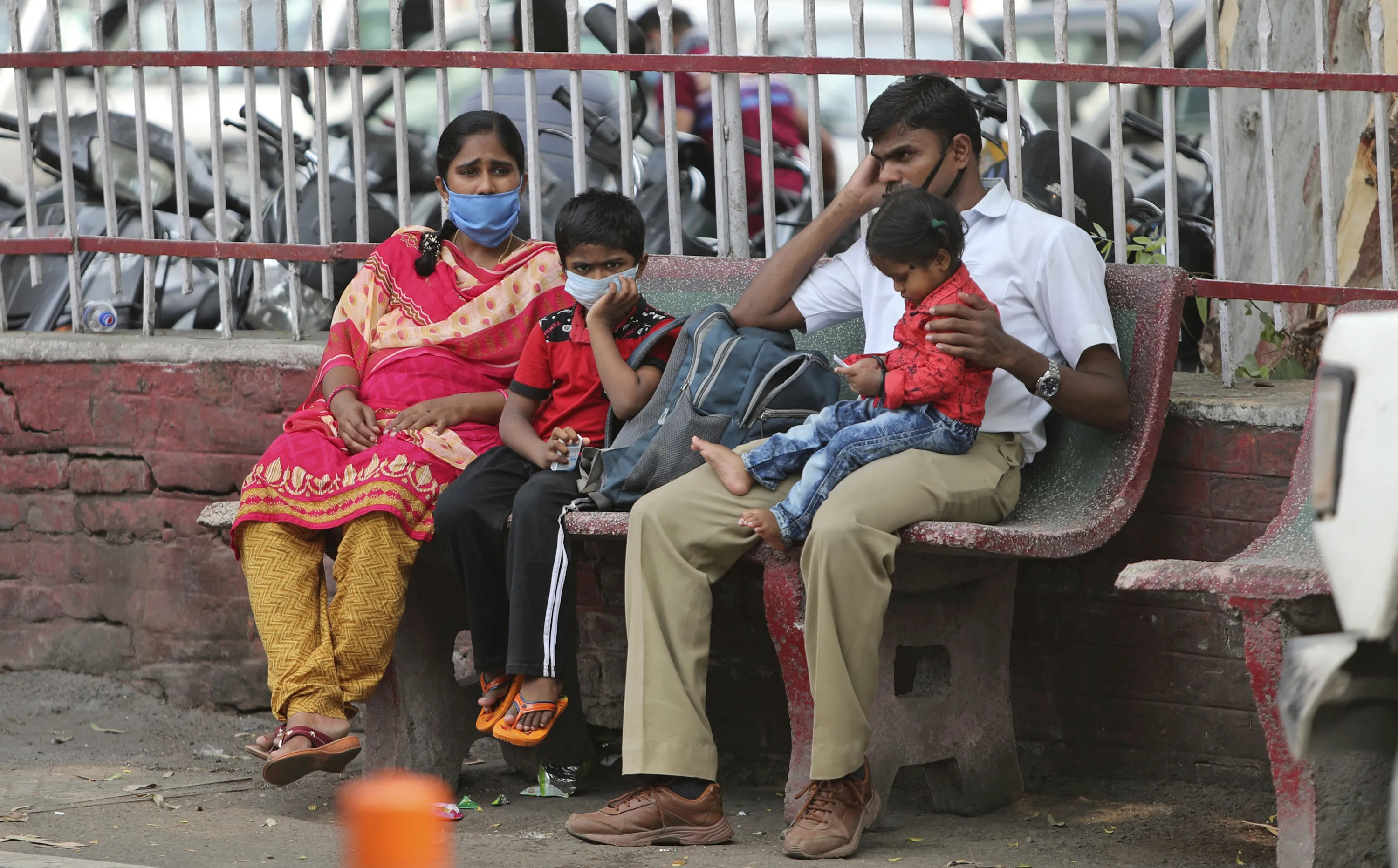 Indians wearing masks wait for transport outside a hospital in Jammu, India, Tuesday, June 23, 2020. India has been recording about 15,000 new infections each day, and some states Tuesday were considering fresh lockdown measures to try to halt the spread of the virus in the nation of more than 1.3 billion. (Photo by Channi Anand/AP Photo)