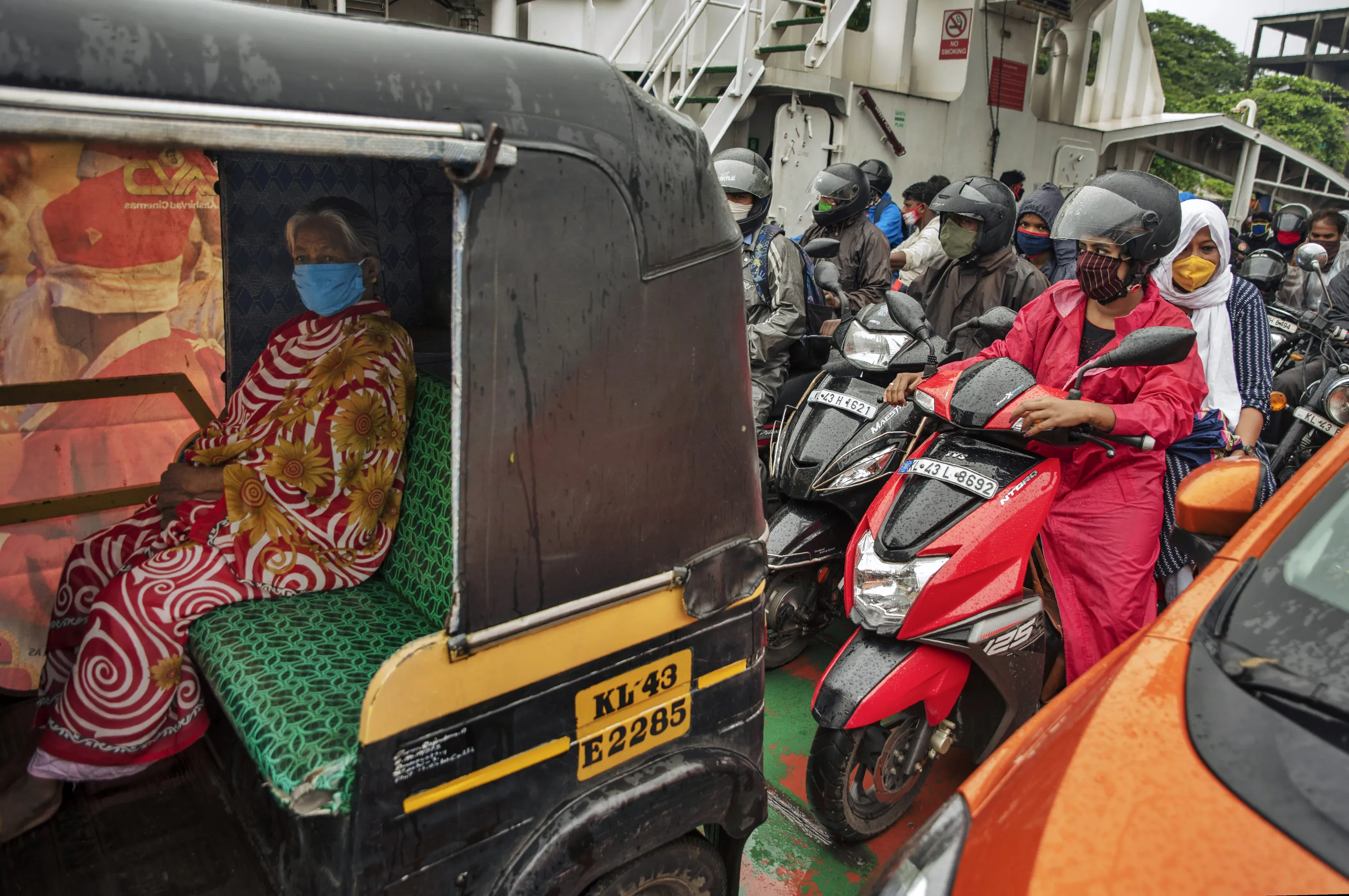 Commuters wearing masks as a precaution against the coronavirus travel in a ferry in Kochi, Kerala state, India, Monday, June 22 2020. India is the fourth hardest-hit country by the COVID-19 pandemic in the world after the U.S., Russia and Brazil. (Photo by R.S. Iyer/AP Photo)