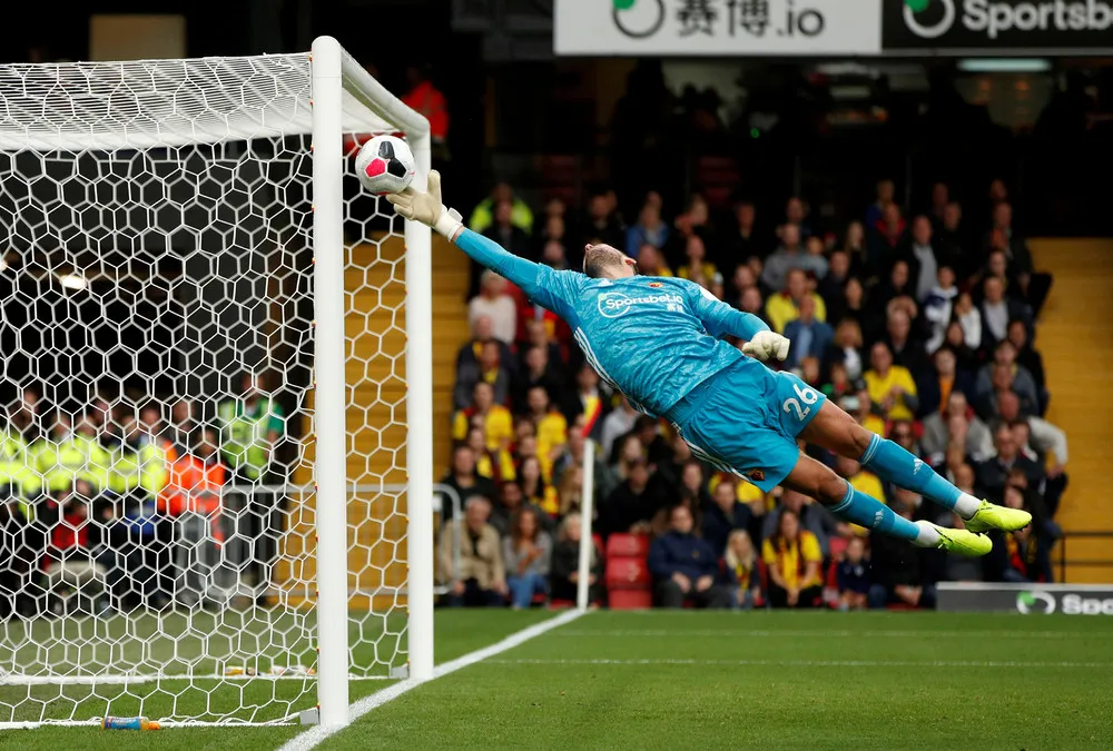 Precision: bronze. Some acrobatics from the Watford goalkeeper Ben Foster against Sheffield United at Vicarage Road. (Photo by John Sibley/Action Images via Reuters)
