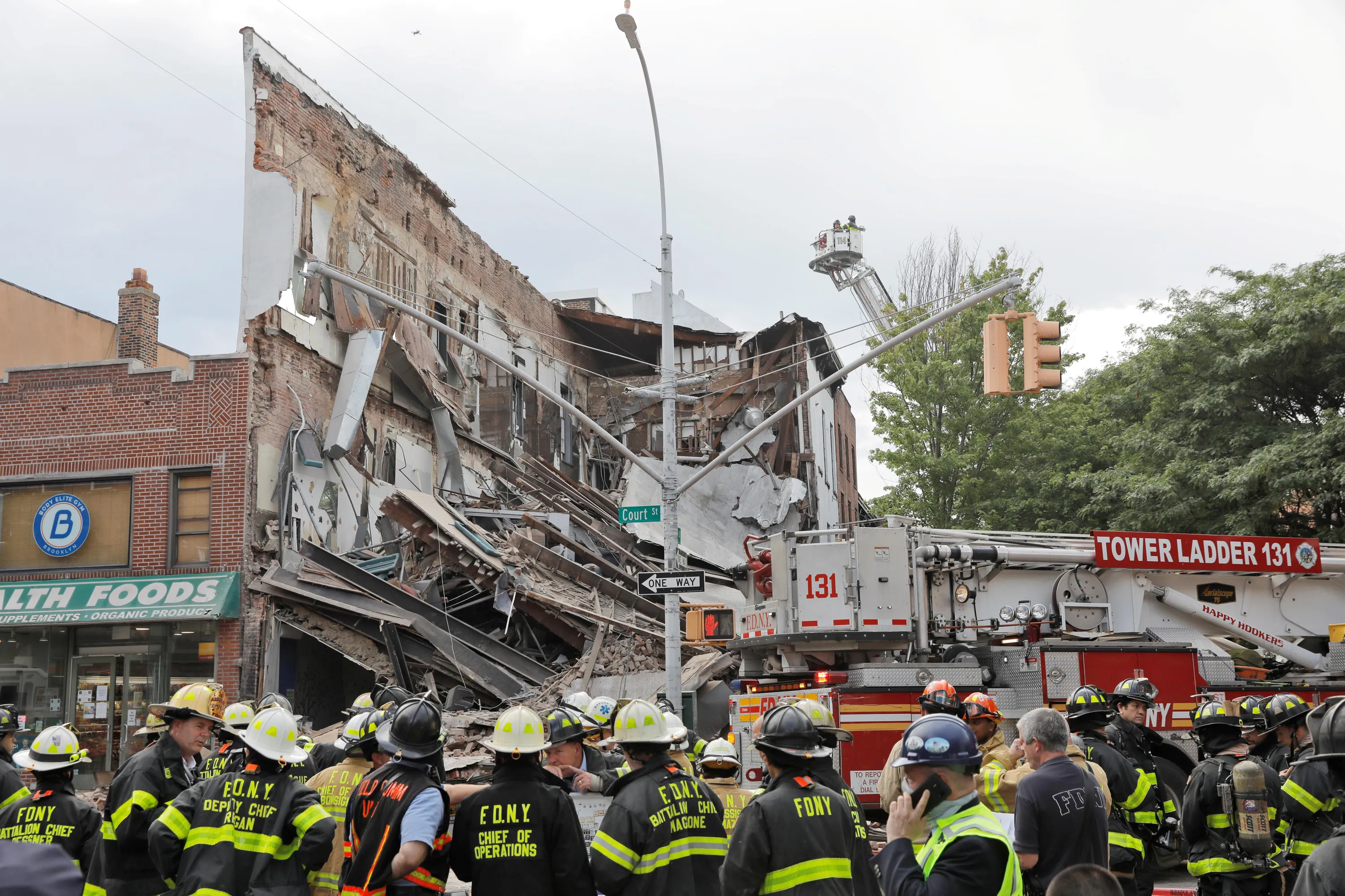 Members of the New York Fire Department (FDNY) inspect a collapsed building in the Brooklyn borough of New York City, New York U.S., July 1, 2020. (Photo by Lucas Jackson/Reuters)