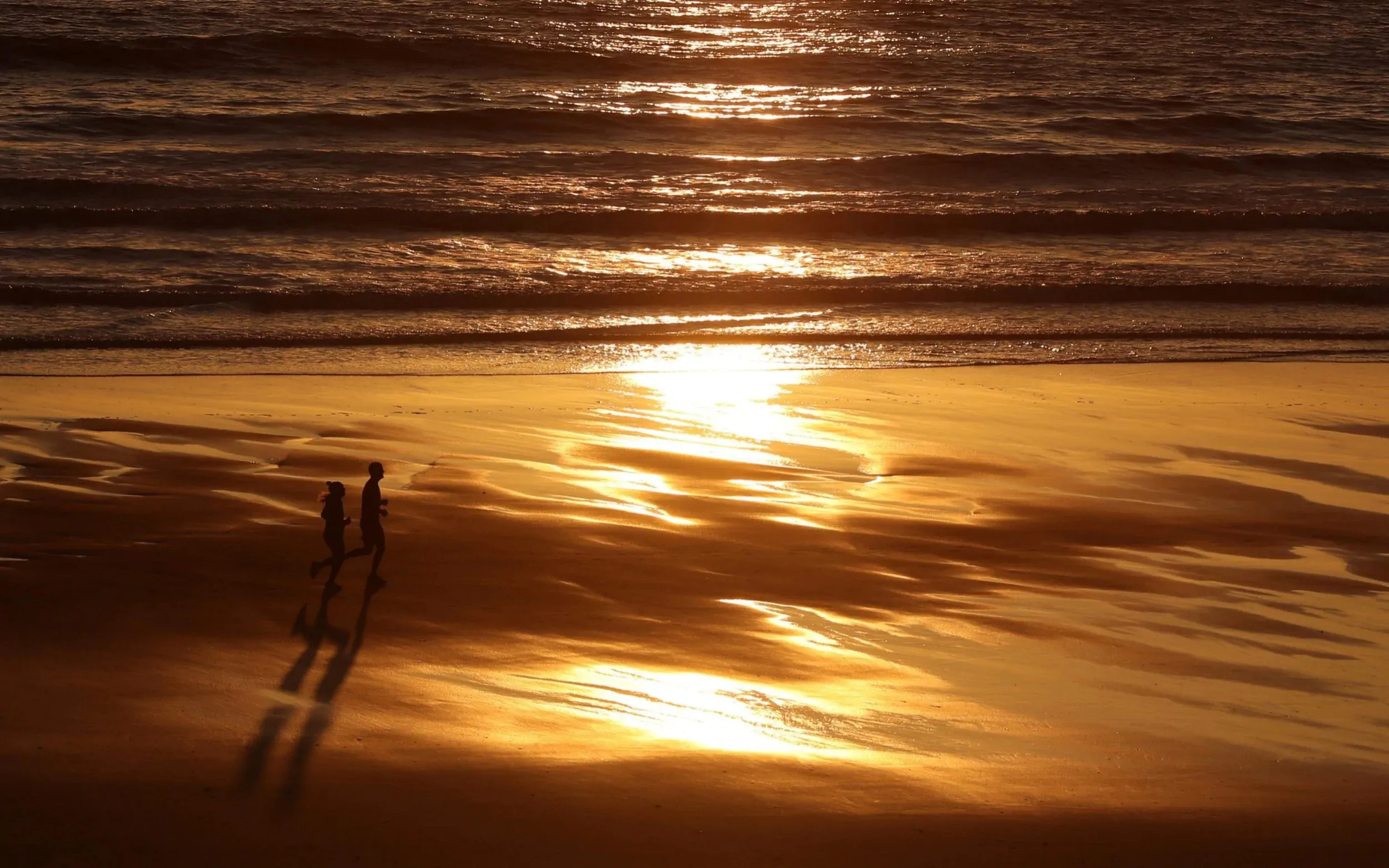 Joggers run on the beach in Tynemouth, as the spread of the coronavirus disease (COVID-19) continues, in Britain on April 19, 2020. (Photo by Lee Smith/Reuters)
