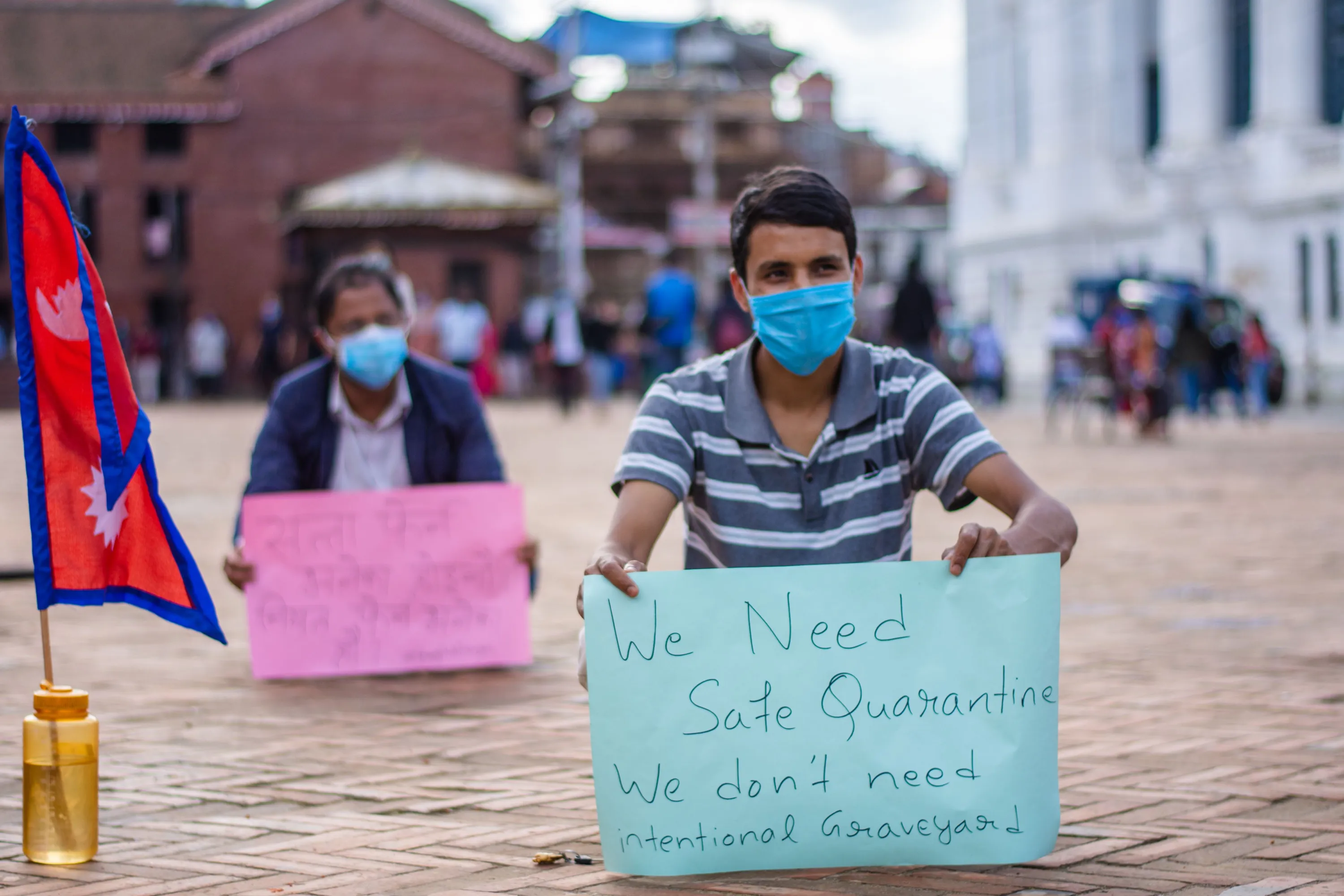 A youth holds a play card in a protest against government demanding better response to fight against coronavirus disease at Kathmandu, Nepal on Monday, July 6, 2020. (Photo by Rojan Shrestha/NurPhoto via Getty Images)