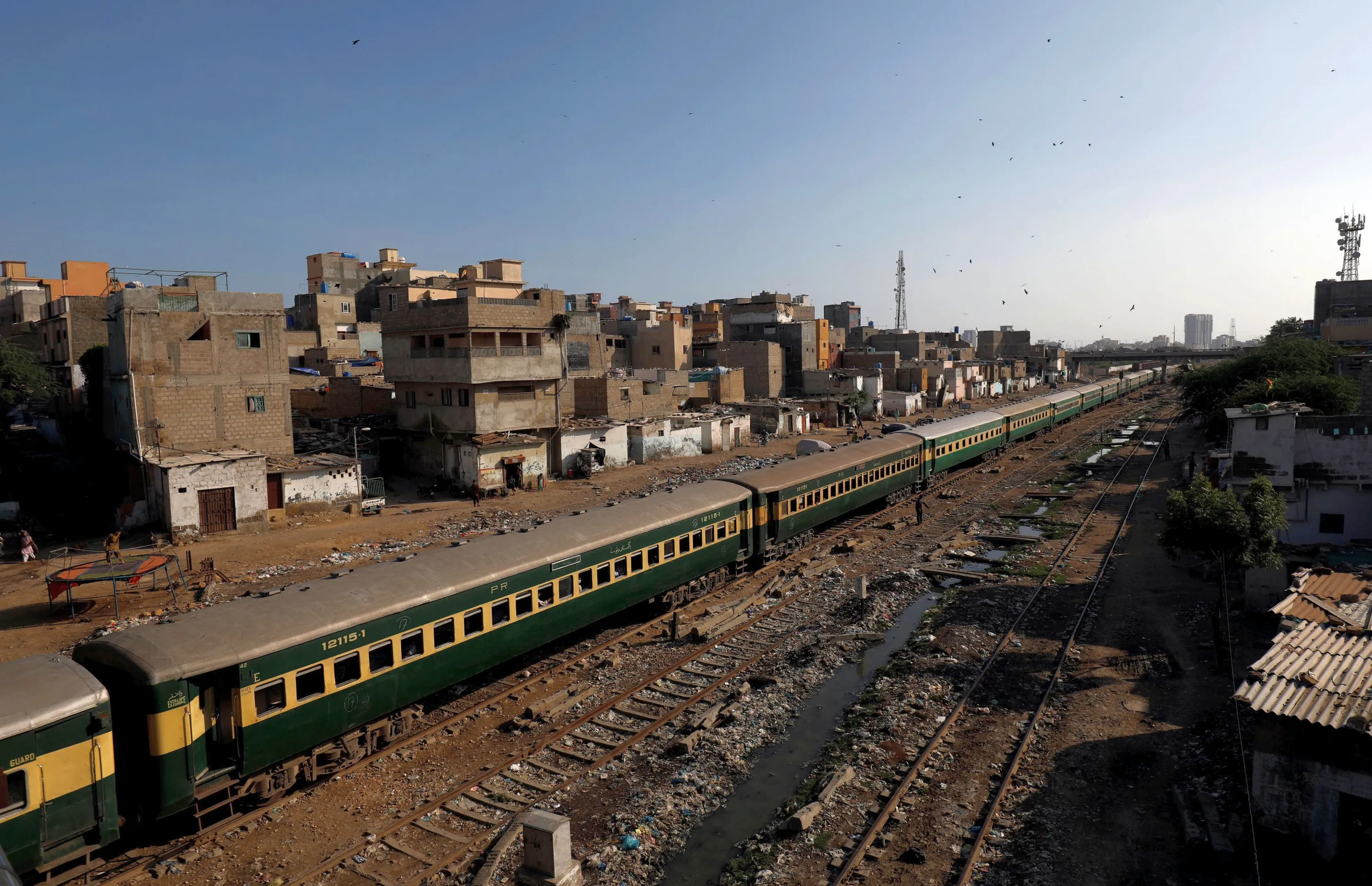 A passenger train moves past a slum area as the outbreak of the coronavirus disease (COVID-19) continues, in Karachi, Pakistan on July 9, 2020. (Photo by Akhtar Soomro/Reuters)