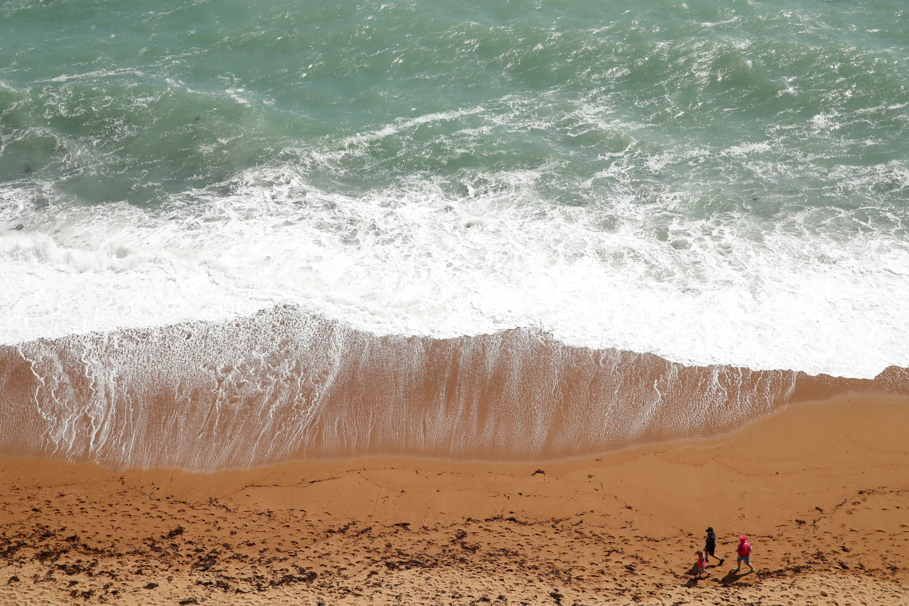 People take a walk on the beach near Durdle Door, following the outbreak of the coronavirus disease (COVID-19), Lulworth, Britain, May 23, 2020. (Photo by Matthew Childs/Reuters)