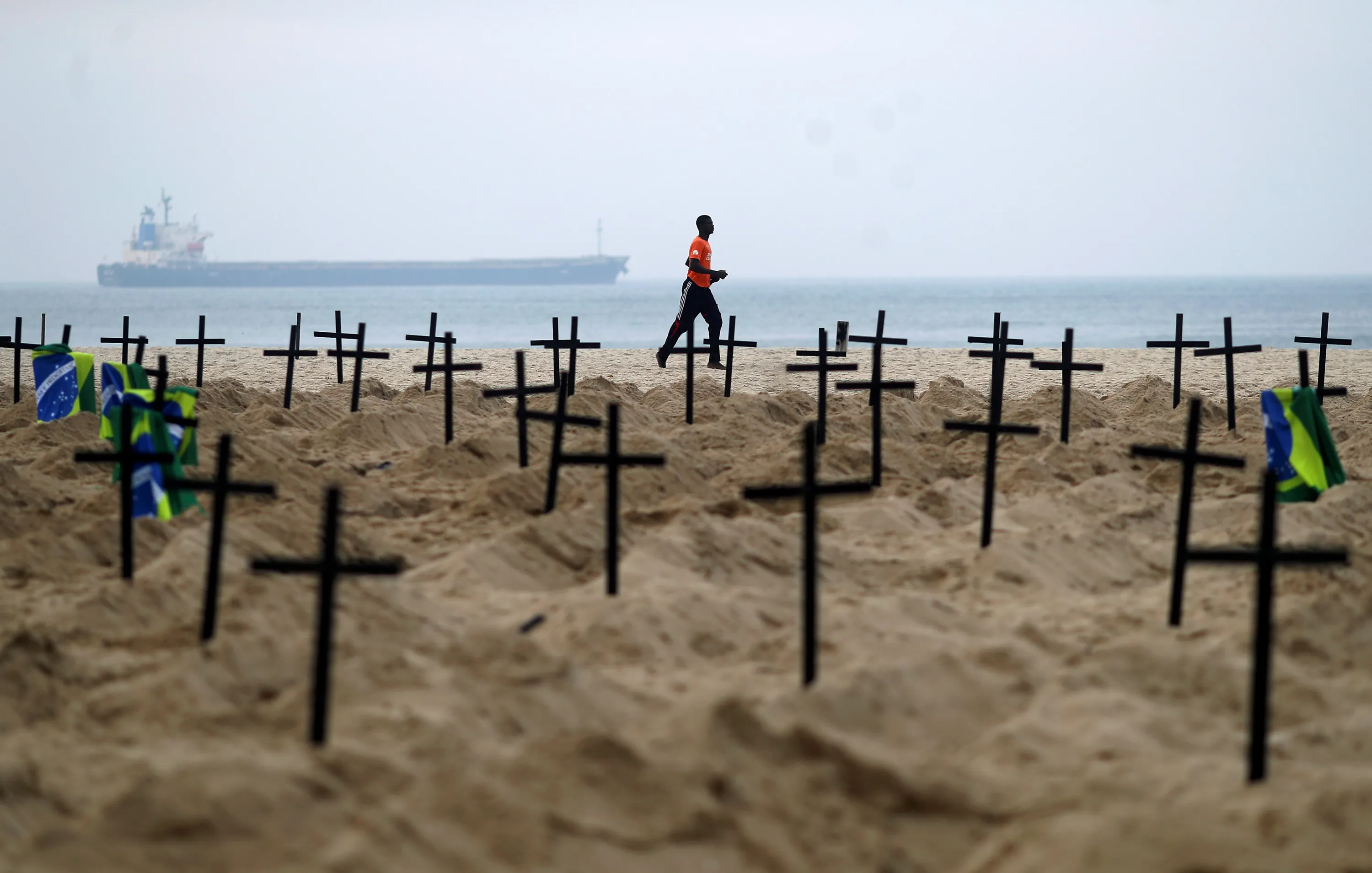 A man runs past the one hundred graves which were dug by activists of the NGO Rio de Paz on Copacabana beach symbolising the dead from the coronavirus disease (COVID-19), in Rio de Janeiro, Brazil, June 11, 2020. (Photo by Pilar Olivares/Reuters)