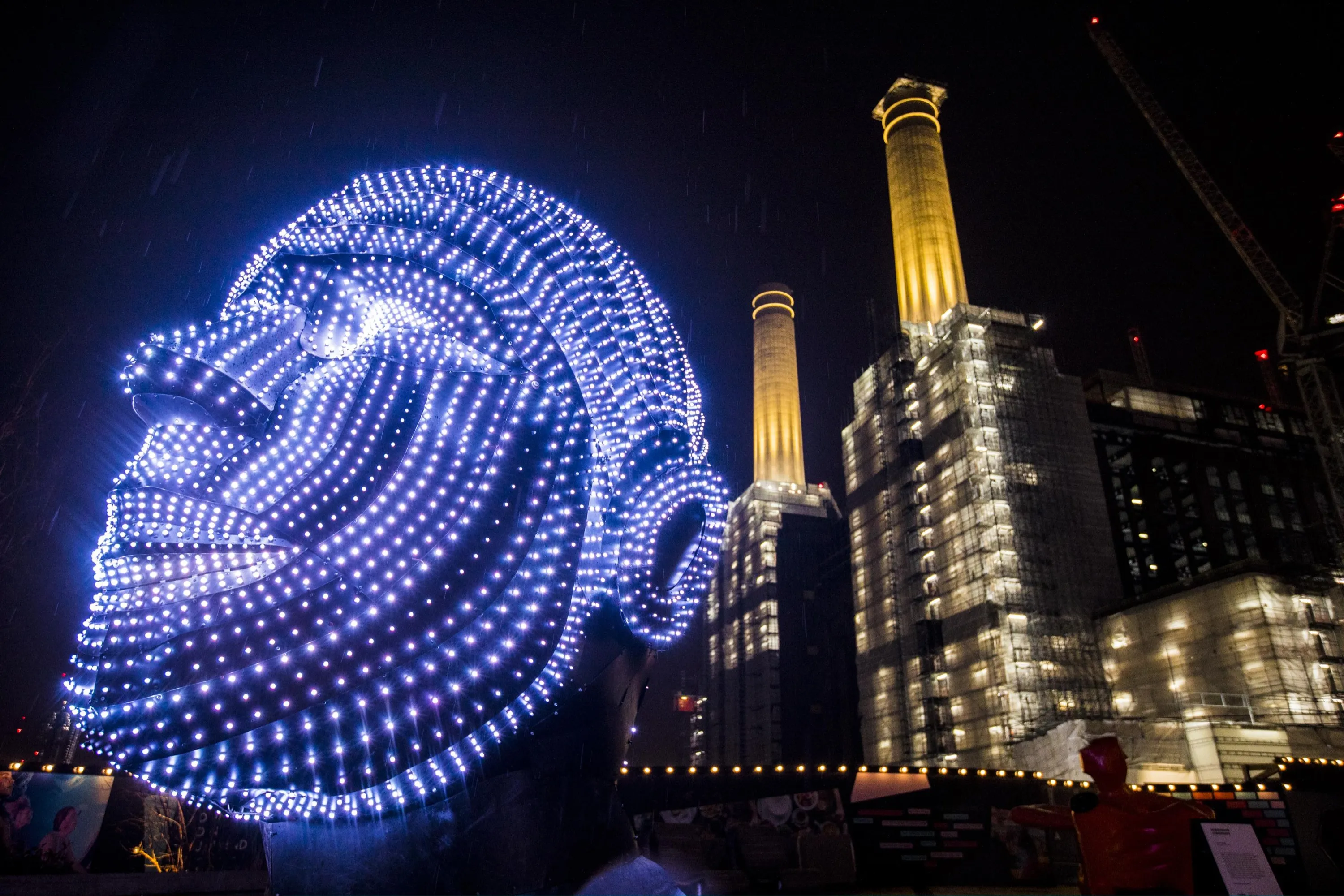 Talking Heads by Viktor Vicsek exhibited at the first ever Light Festival at Battersea Power Station on January 08, 2020 in London, England. Battersea Power Station Light Festival is free to the public and will be brightening up the dark winter evenings until 16th February 2020. (Photo by Tristan Fewings/Getty Images for Battersea Power Station)