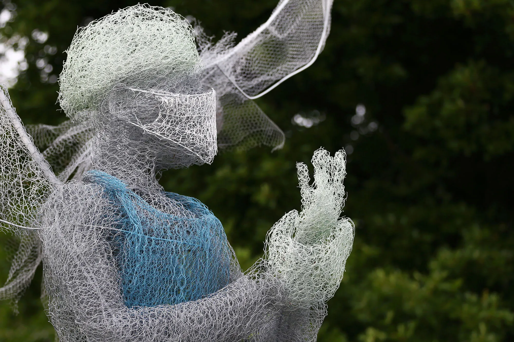Luke Perry's man made sculpture of a winged medical worker is seen in Lightwoods Park on May 21, 2020 in Bearwood, England. The British government has started easing the lockdown it imposed two months ago to curb the spread of Covid-19, abandoning its “stay at home” slogan in favour of a message to “be alert”, but UK countries have varied in their approaches to relaxing quarantine measures. (Photo by Cameron Smith/Getty Images)