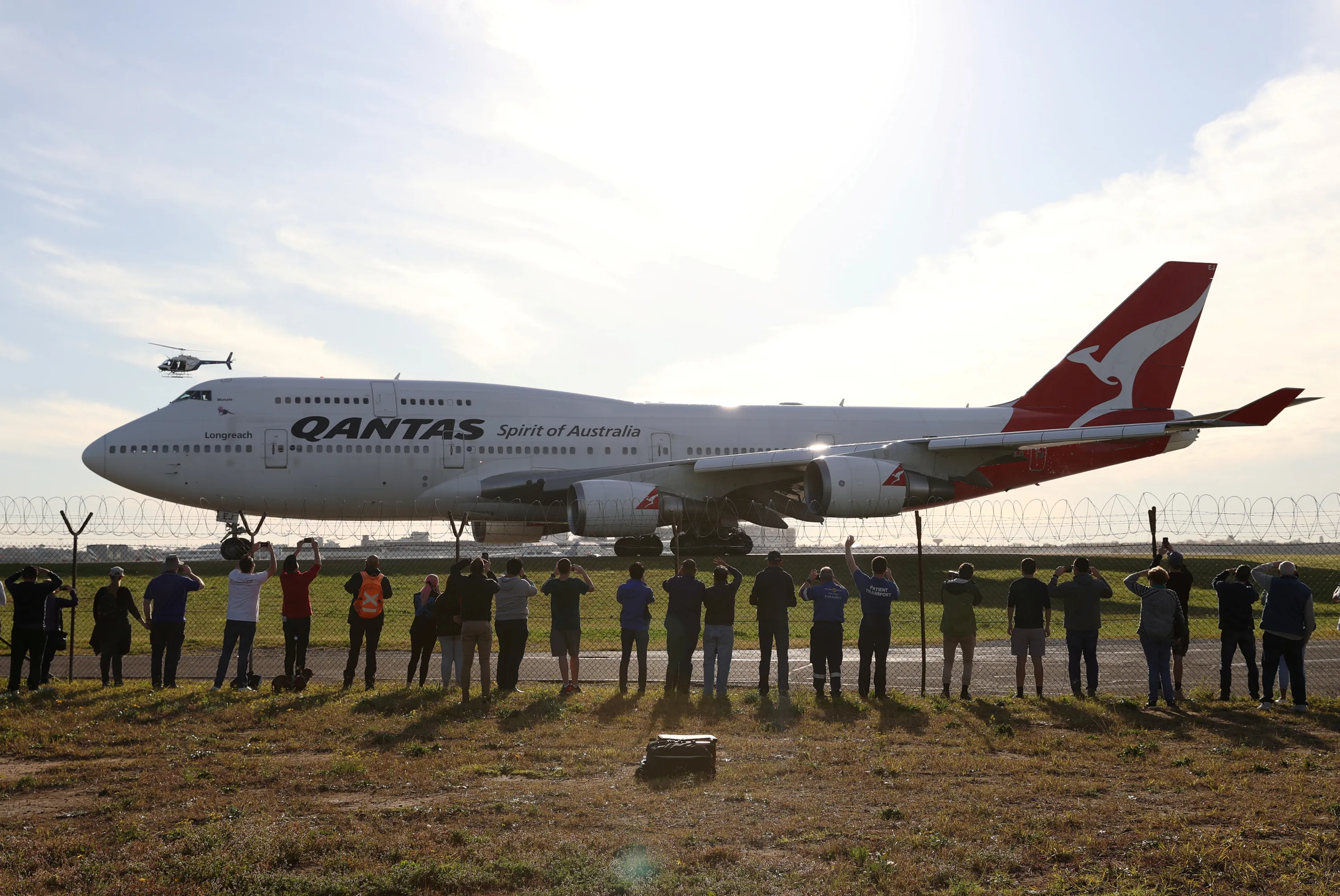 People watch the last Qantas 747 jet depart Sydney Airport in Sydney, Australia, as Qantas retires its remaining Boeing 747 planes early due to the coronavirus disease (COVID-19) outbreak, July 22, 2020. (Photo by Loren Elliott/Reuters)