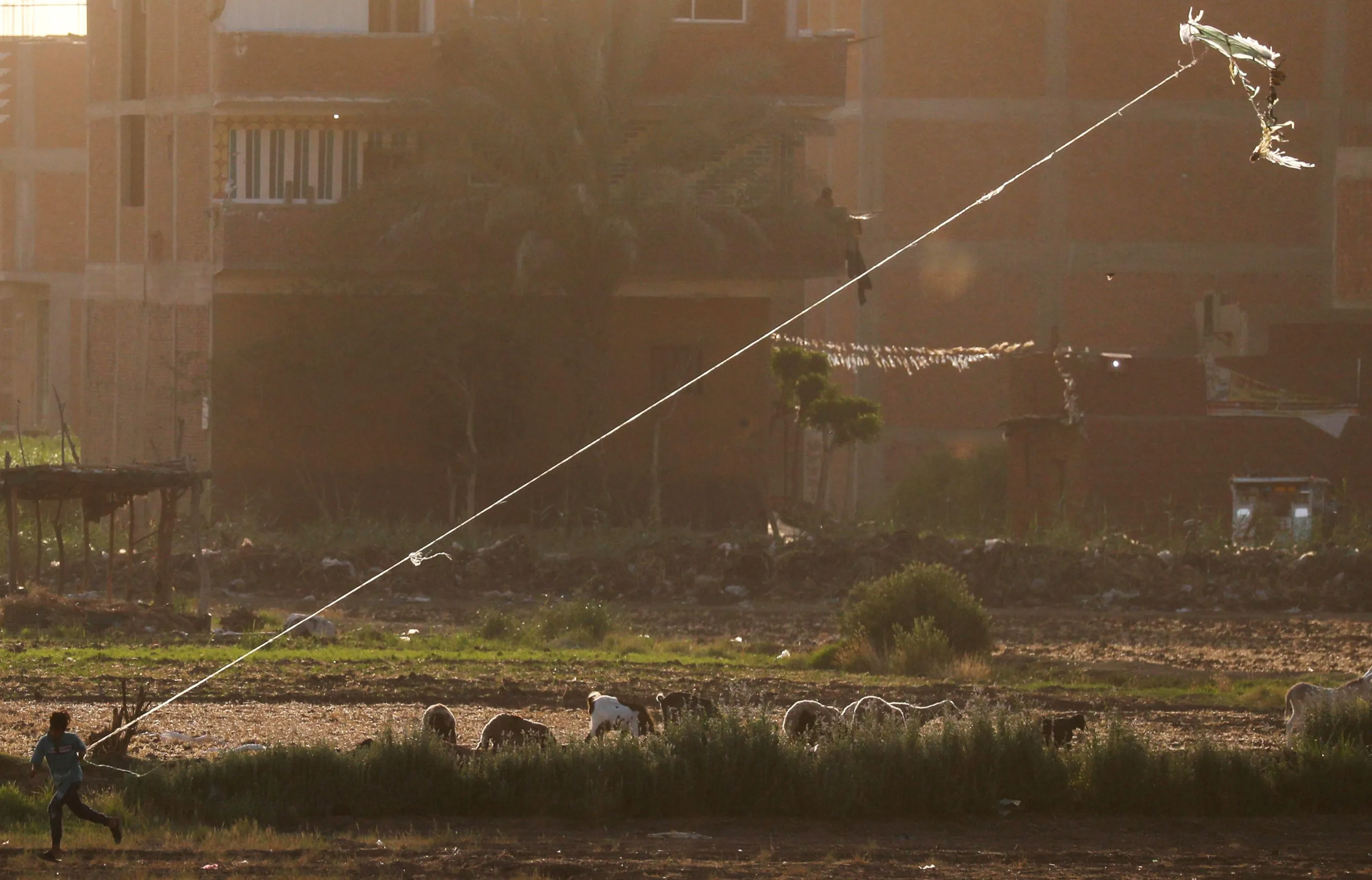 A boy flies a handmade kite near sheep, in agriculture land named “El Shouna” at el-Marg district, east of Cairo, amidst the spread of the coronavirus disease (COVID-19), Egypt, June 10, 2020. (Photo by Amr Abdallah Dalsh/Reuters)